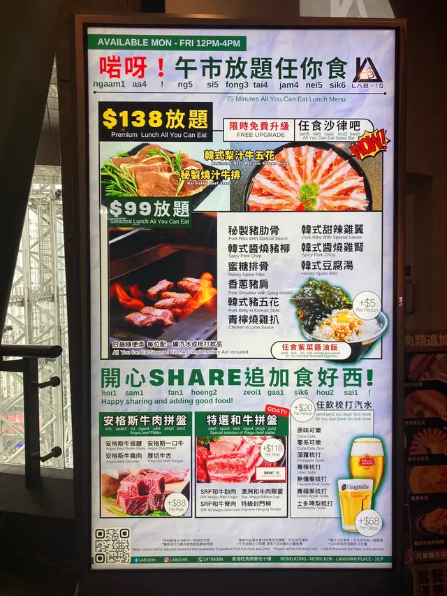 🥩旺角韓式無煙燒肉放題🥩出去旺角行街買野,經過朗豪坊見到呢間燒肉放題好吸引😍之前經過一次已經想去食了,可惜無時間~今日終於比我食到😋我地今日叫左Supreme Set ($298),價錢相當實惠,包含咗牛肉拼盤,牛肩肉,牛五花,厚切牛舌,首爾牛肋條,西冷,牛板腱,廣島蠔,蜆等等🍽岩哂一班牛魔王😈除左以上燒肉,仲有一個自助bar檯,有幾款韓式前菜,炸薯條🍟炸雞塊,同埋朱古力蛋糕仔🍫食材方面幾新鮮❤️我自已都另外叫多左幾碟🤣地點位於旺角朗豪坊,好方便👍餐廳設計得好乾淨光猛☀️而且個感覺好似實驗室咁,裝修風格令人耳目一新!連飲品樽都設計成三角燒杯形狀,好得意❤️呢間餐廳最值得讚既係,佢個燒烤爐有抽風系統,所以唔會好大油煙味,食完燒肉都無人聞得出呀😏佢地而家仲有一個四周年夾波波遊戲🤹♀️大家可以玩遊戲,有機會贏得1折優惠!Lab 10 @lab10.hk 地址:旺角朗豪坊10樓26號鋪…查看更多