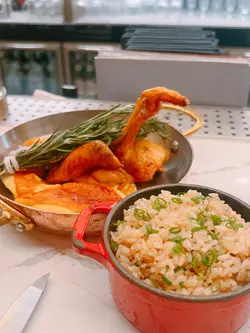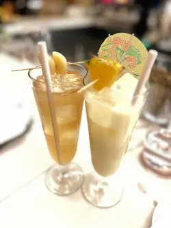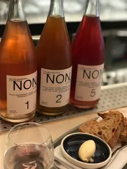 Non-alcoholic wine alternatives; unlimited refill of sourdough