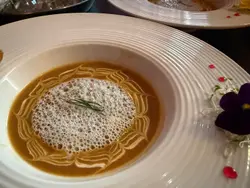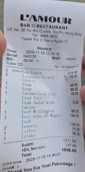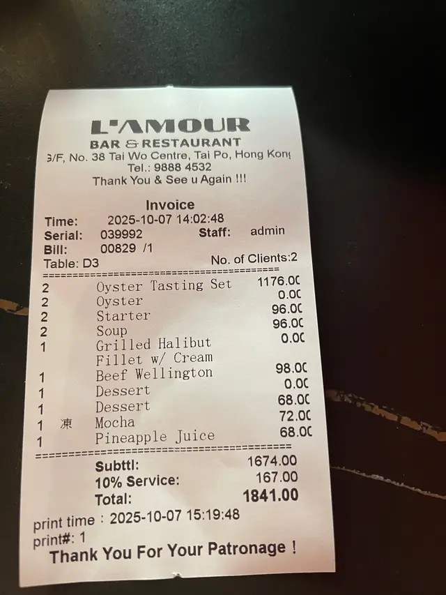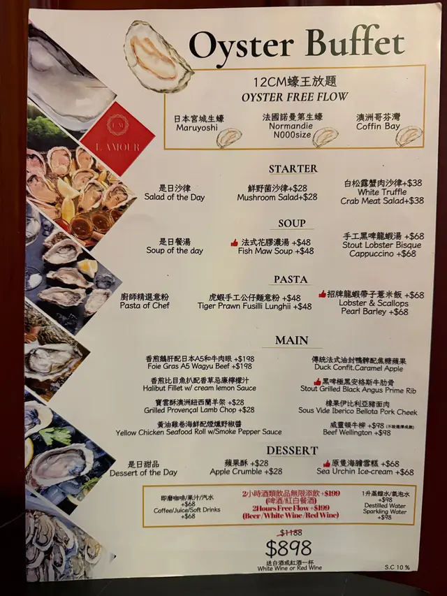 餐廳好近太和街,位置唔多但都坐得舒服。我地weekend 中午黎食係差唔多滿座,所以最好book定枱。話明係Oyster Tasting Menu,當然有靚靚生蠔食。日本,法國同澳洲生蠔各兩只。大大只生蠔見到已經胃口大開。日本生蠔比較有濃郁的海洋風味,食個鮮味。法國生蠔就層次比較豐富,肉質柔滑,我最鍾意!澳洲蠔肉身肥美而口感鮮甜,比較有餘韻。各款都各有特色,唔太食生冷野嘅媽咪都食晒三只!法國餐嘅餐湯都值得期待,今次我地試左龍蝦湯同「是日手工濃湯」 。龍蝦湯好濃郁,不過最驚喜係今日嘅魚湯,超鮮甜,仲有啖啖魚肉。我地冇另外加錢升級Starter,揀左「是日沙律」,事實證明都係冇揀錯,全部都係新鮮食材配搭嘅廚師推介。主菜分別食左「法式日本A5和牛肉眼」 同 「北海道有機南瓜帶子薏米飯」。所謂法式和牛係指將法式料理的烹調技巧運用於日本和牛上,呢種食法都係第一次,一樣能展現和牛獨特的油花與肉質風味。和牛再配上三色南瓜泥,薯仔泥同蕃薯泥,等於一牛三食,非常有新意。最後仲有一人一大塊靚靚又好味嘅芝士蛋糕,媽咪食唔晒,我一個人食晒1.5塊就知我有幾咁鐘意…查看更多