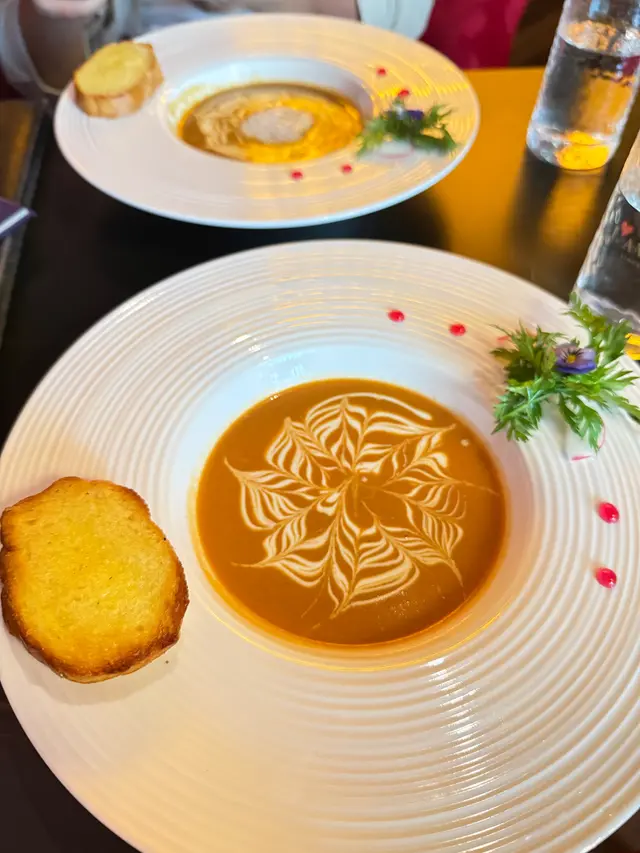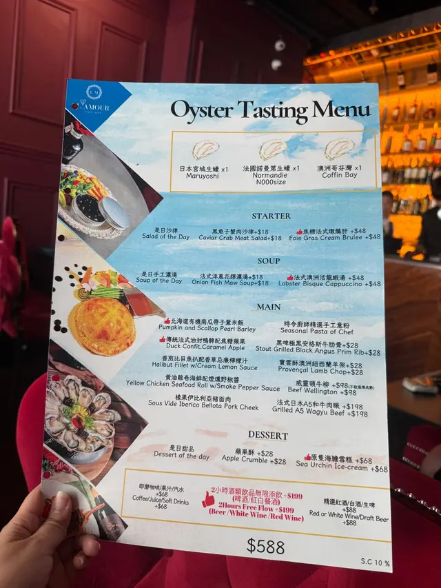 餐廳好近太和街,位置唔多但都坐得舒服。我地weekend 中午黎食係差唔多滿座,所以最好book定枱。話明係Oyster Tasting Menu,當然有靚靚生蠔食。日本,法國同澳洲生蠔各兩只。大大只生蠔見到已經胃口大開。日本生蠔比較有濃郁的海洋風味,食個鮮味。法國生蠔就層次比較豐富,肉質柔滑,我最鍾意!澳洲蠔肉身肥美而口感鮮甜,比較有餘韻。各款都各有特色,唔太食生冷野嘅媽咪都食晒三只!法國餐嘅餐湯都值得期待,今次我地試左龍蝦湯同「是日手工濃湯」 。龍蝦湯好濃郁,不過最驚喜係今日嘅魚湯,超鮮甜,仲有啖啖魚肉。我地冇另外加錢升級Starter,揀左「是日沙律」,事實證明都係冇揀錯,全部都係新鮮食材配搭嘅廚師推介。主菜分別食左「法式日本A5和牛肉眼」 同 「北海道有機南瓜帶子薏米飯」。所謂法式和牛係指將法式料理的烹調技巧運用於日本和牛上,呢種食法都係第一次,一樣能展現和牛獨特的油花與肉質風味。和牛再配上三色南瓜泥,薯仔泥同蕃薯泥,等於一牛三食,非常有新意。最後仲有一人一大塊靚靚又好味嘅芝士蛋糕,媽咪食唔晒,我一個人食晒1.5塊就知我有幾咁鐘意…查看更多