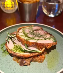 和友人去左試呢間仙后同位置既landaus 今次安排左對門口位因為個呢度有cheese wheel pasta 食仲會面前整,所以好期待😚勁多small plate 可以點,而且都有唔同類(seafood/ meat / veggie )朋友揀左excuse my french 做配酒偏酸,有點木味Appetiser 點左Crostini Di Manzo- 係beef tartare toast ,topping 加左芝士同咸蛋碎,我未試過加咸蛋既beef tartare , 多士好脆,咸蛋碎同芝士為軟軟既生牛肉加左份咸香,個人覺必點第二款-Octopus Spiedino本身以為只係一個燒左既八爪魚加蔥但意想不到佢底加左一個tomato herb sauce , 酸甜味同八爪魚好夾,而且佢display 仲好靚之後到main - 本身想點牛排但staff 推薦我地試呢個圓形既pork bully佢整到好似中式燒肉咁皮脆多汁但汁醬就路係黃芥辣,係酸酸地既蕃茄蔬菜醬在底部面再灑上香草牛油,職員呢個介紹很不錯而且佢地介會為路同客人推薦唔同食物,大家太三心兩意是都可以問下佢地,非常之好既提議呢配菜就點左French fries and spinach都清埋碟是日重點來了,我見每枱都點了的cheese wheel ,會即場推過黎表演比你睇,而且都唔係hea hea 下,點火前會先提提客人小心,佢地加熱完cheese wheel 再交fresh FETTUCCINE 去撈均勻,最後再刨新鮮黑松露上去,FETTUCCINE是寬條麫,新鮮製比較彈牙同厚身平時食cheese wheel 感覺都比較咸同濃比較「漏」但呢度唔會太咸同埋令條麫都比芝士包住再配埋黑松露,我已經想去下一次了甜品點左tiramisu,最後職員講送比我地因為佢地本身是一碗比較大的,但隔離枱客人慶生日,所以攞左一個比較大既比例既tiramisu,為表歉意佢除左送呢件比較細既蛋糕比我地之外另外送我地試下佢地另一個甜品- chocolate gelato 雖然佢講到非常唔好意思,但我地覺得二樣都好好食,(後來我睇返其他人既相先明,原來平時的確更大碗既)而朱古力gelato 就好濃朱古力味配埋杏仁食好滿足,都多謝餐廳咁誠懇同為客人交代返我就已經決定要再book 下一次慶祝時候食Highly recommend 大家都去下…查看更多