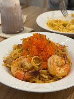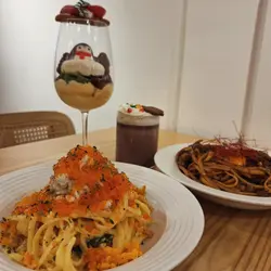 上網見到呢間好靚嘅餐廳,就約埋朋友提早過聖誕,門口已經有大大棵聖誕樹做裝飾,仲有好可愛嘅熊啤啤。不過其實最吸引我嘅,係佢地嘅動物棉花糖。 其實本身都好鍾意食西餐意粉,不過見呢度有啲平時比較少見嘅款式,所以就叫黎試下 壽喜燒牛肉扁意粉牛肉煮得剛好,夠林份量又多,意粉吸收了壽喜燒醬汁的甜味,原來同意粉都好夾,而且好多汁,好夠味,又濃郁,有驚喜。 鹹蛋黃蟹肉扁意粉見呢個幾特別所以試下,鹹蛋黃搭配蟹肉,都幾夾,有鹹蛋黃嘅鹹香再加蟹嘅鮮甜味,仲有蟹籽增加口感,成個配搭都好好味,今次試呢兩款平時比較少見嘅意粉都好有驚喜,好滿足。 動物派對盲盒拿鐵話明為左棉花糖而黎,緊係要飲呢杯盲盒啦。送上黎係白熊,真係超可愛,仲有掌印,好細心呀。呢杯係有朱古力味調制的拿鐵,好香好濃郁。 肉桂朱古力都未飲過肉桂配朱古力,所以好想試下,肉桂的香氣原來同朱古力好夾,帶來溫暖感覺,面頭仲有cream同裝飾好靚呀,好有聖誕feel。 Latter芭菲杯呢杯又係重點,因為一樣有勁可愛嘅棉花糖公仔,裡邊有mochi同埋tiramisu,邊頭仲有餅同士多啤梨,真係好豐富。 呢間餐廳唔止環境靚食物靚,而且仲好好味,好有心思,職員都好有禮貌,今日同朋友都食得好開心。…查看更多