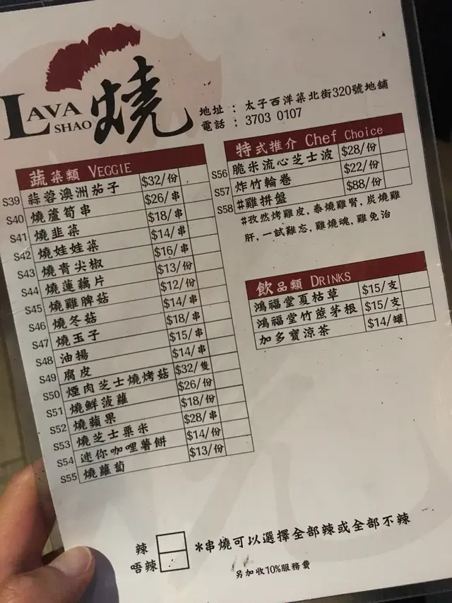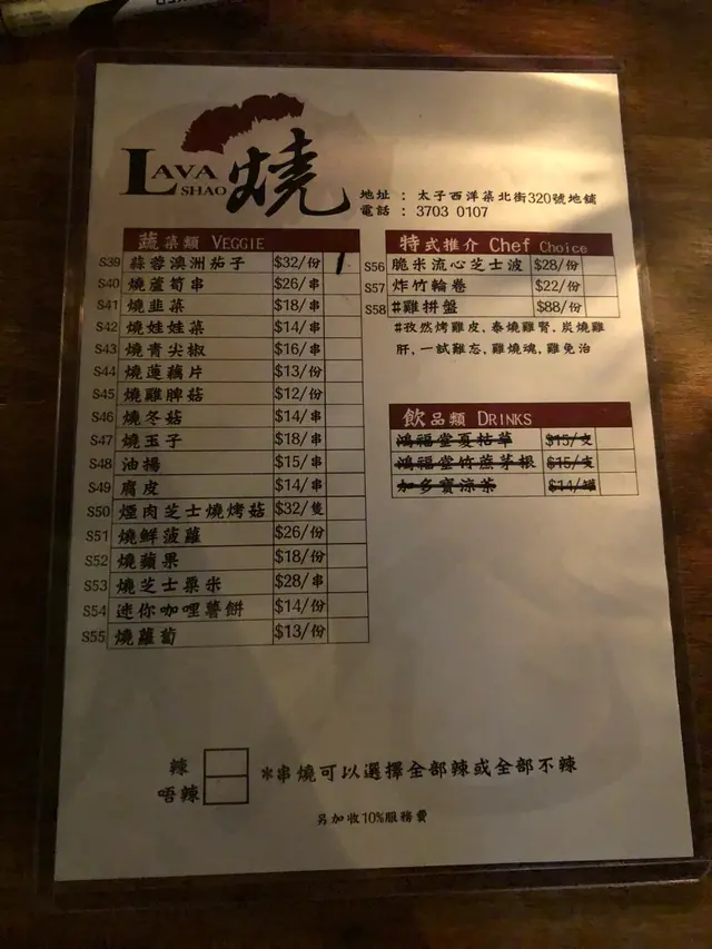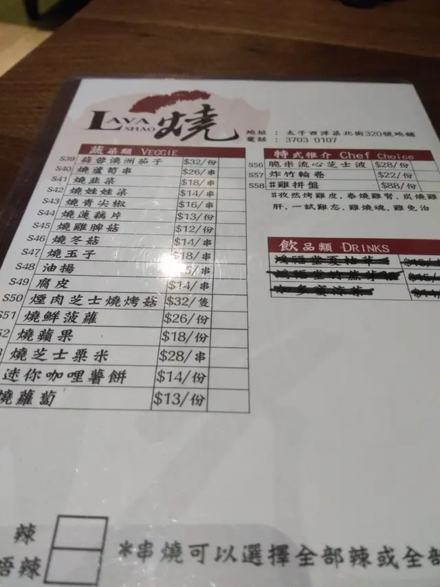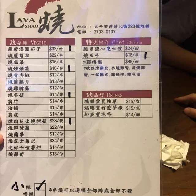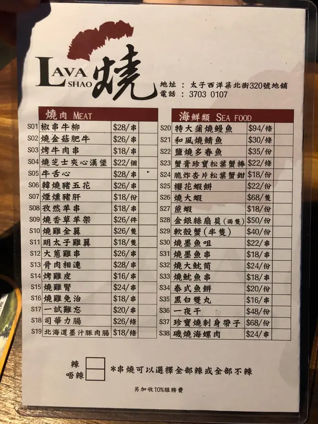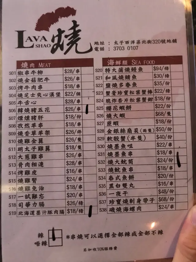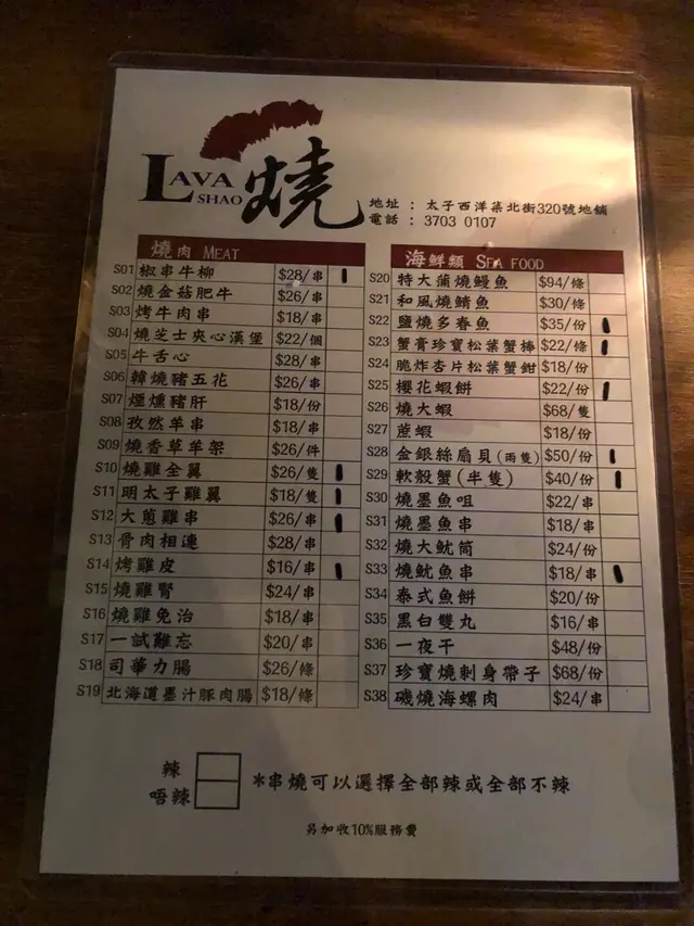 Lava 燒 (太子) 網址: https://s.openrice.com/QrbS06cK800 地址: 香港太子西洋菜北街320號地舖 電話: +852 37030107