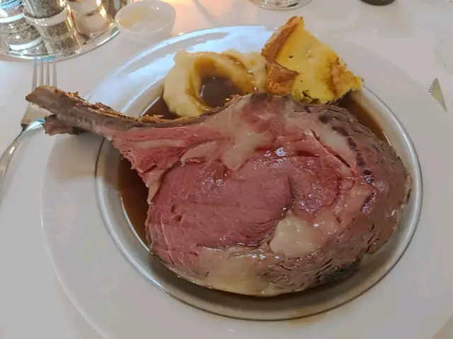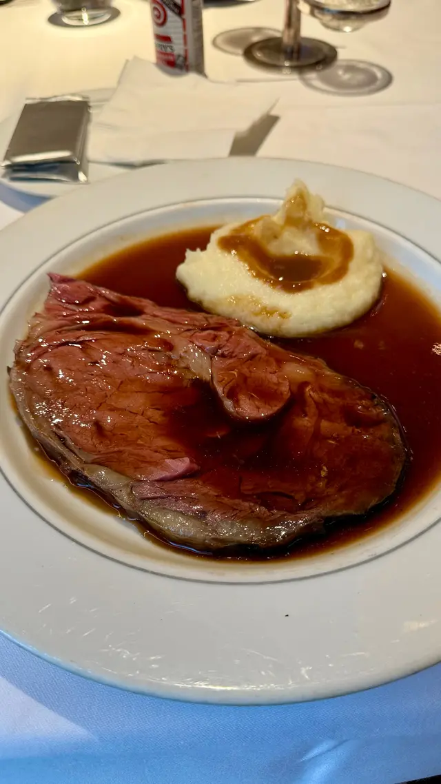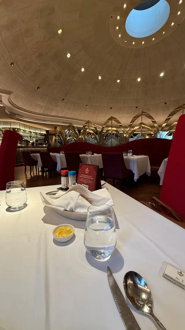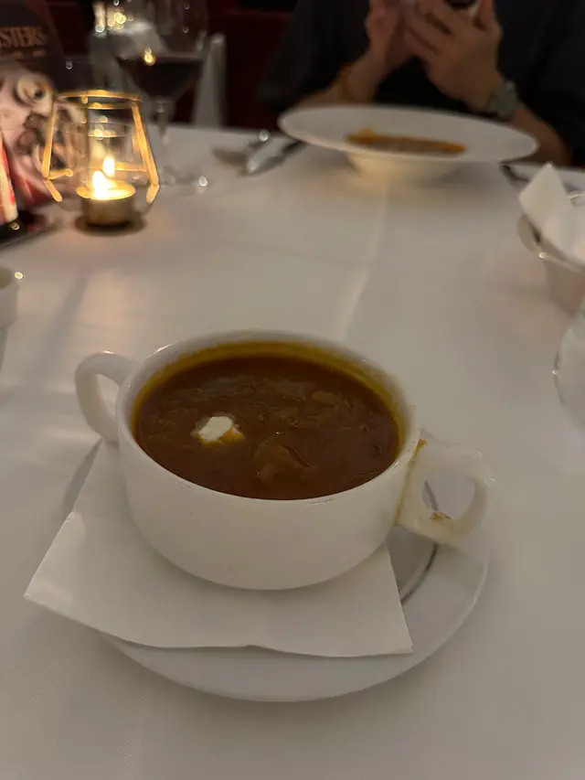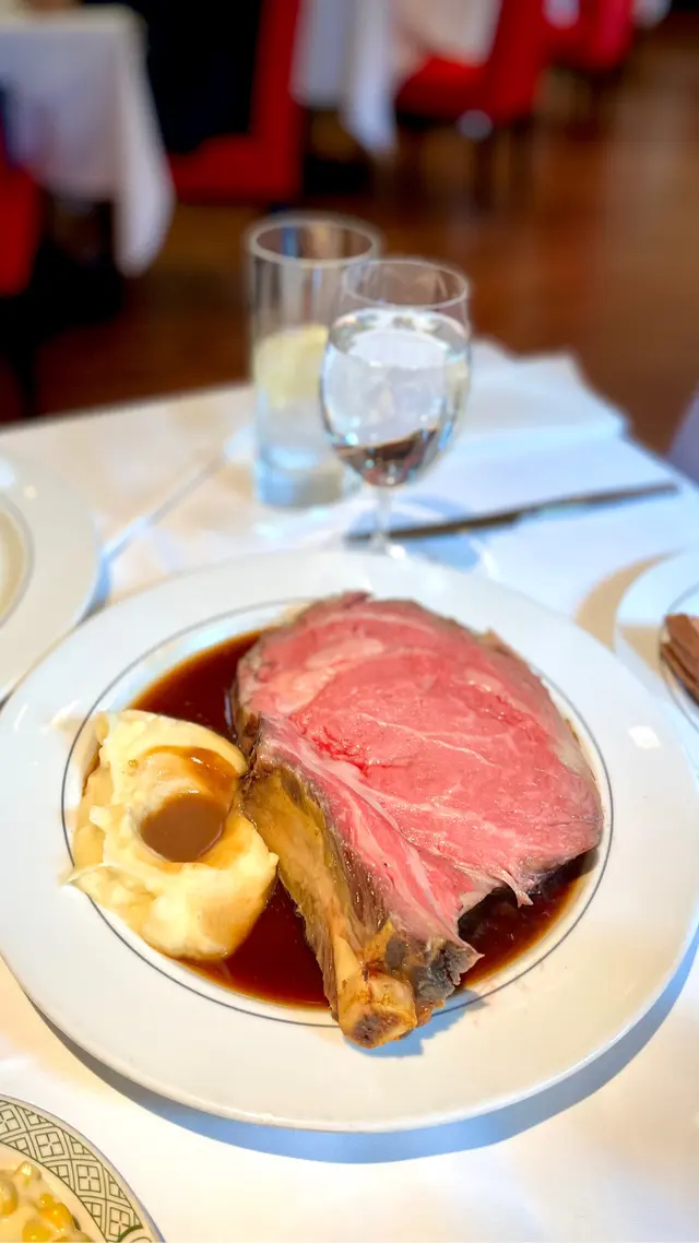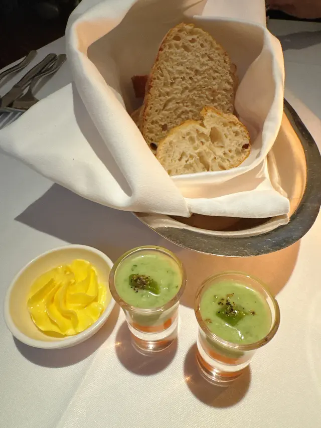 城中最著名吃Prime Rib的餐廳非Lawry's莫屬。美國的元祖店已有超過80年歷史。早就想一試呢間餐廳,所以趁生日前預訂了HSBC Premier Dinner Set,$1388兩位。餐廳位於中環,內部裝潢典雅,但有點舊。侍應服務很好,入座時要了支still water,索價$95一瓶。餐前有杯柚子清酒泡沫作開胃小品。麵包有水準,暖身且外脆內軟,牛油亦好香。頭盤為海鮮三重奏,有魚子醬藍蝦他他、帶子撻和蟹肉牛油果卷。當中以藍蝦他他最好食,生蝦爽滑,份量足,配上魚子醬和豉油汁更顯鮮味。冰旋翡翠沙律為Lawry's其中一道招牌菜,十分講究溫度。侍應先派冰叉,然後即席把沙律菜放入不鏽鋼碗,並於碎冰上旋轉拌勻食材。沙律菜爽脆,並有車厘茄和紅菜頭絲,佐以些利酒沙律醬。如果以煙肉代替紅菜頭絲就更合我心水。經典大蜆周打忌廉湯 - 大蜆有4大隻,十分鮮甜。湯也充滿大蜆和洋蔥的甜味,十分好飲。上主菜前先來個青檸雪芭清新味蕾。主菜燒牛肉選了medium rare,由廚師推出招牌不鏽鋼餐車,並即席切出美味的燒牛肉,並配有yorkshire pudding和薯蓉作配菜。燒牛肉嫩滑,肉味豐富,但沒有想像中juicy,可能點rare會比較好。Yorkshire pudding偏鹹和乾,唔太好食。另一道主菜為香煎石斑魚及燒八爪魚。燒八爪魚有碳燒味,軟滑不韌。石斑肉質就比較嚡。甜品為椰香鮮蜜瓜,像蜜瓜肉糖水加上椰子雪糕。味道普通,個人不太喜歡。由於是生日的關係,侍應邊唱生日歌邊送上蛋糕,蠻有儀式感。生日蛋糕都好食,甜度適中且忌廉不多。…查看更多