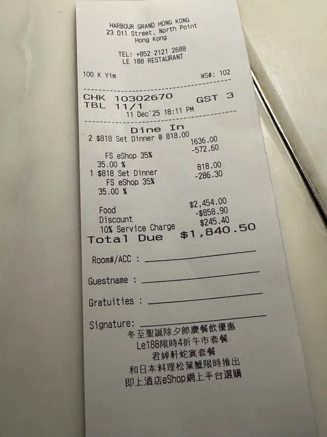 - 賺取之「亞洲萬里通」里數將根據餐飲與膳食消費,包括服務費、稅項及小費的總和而計算。