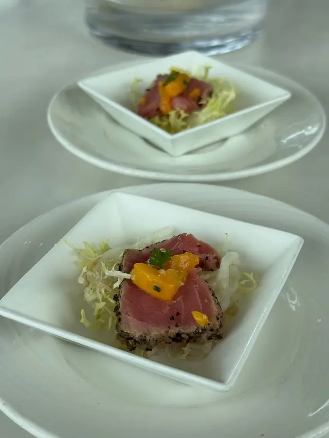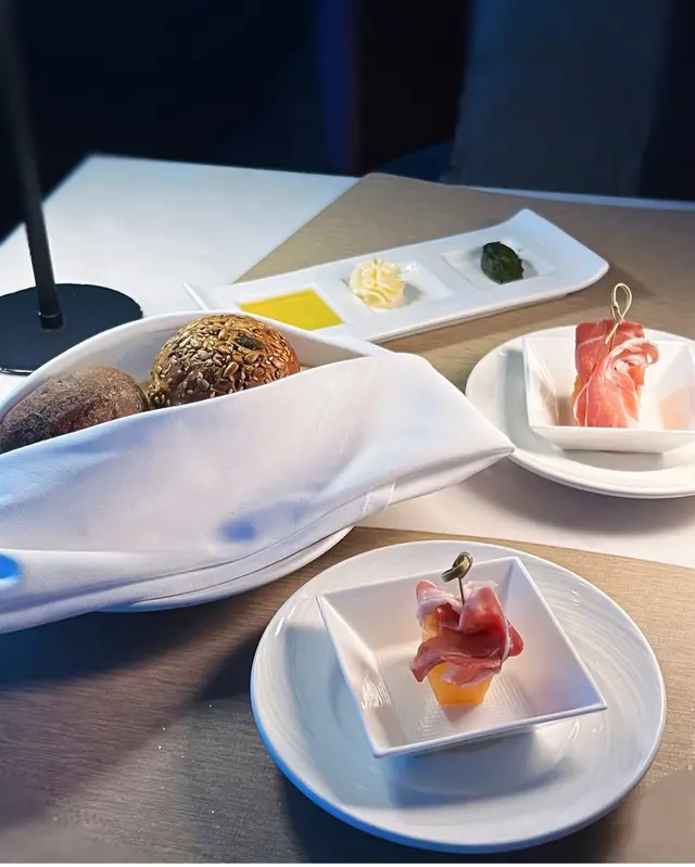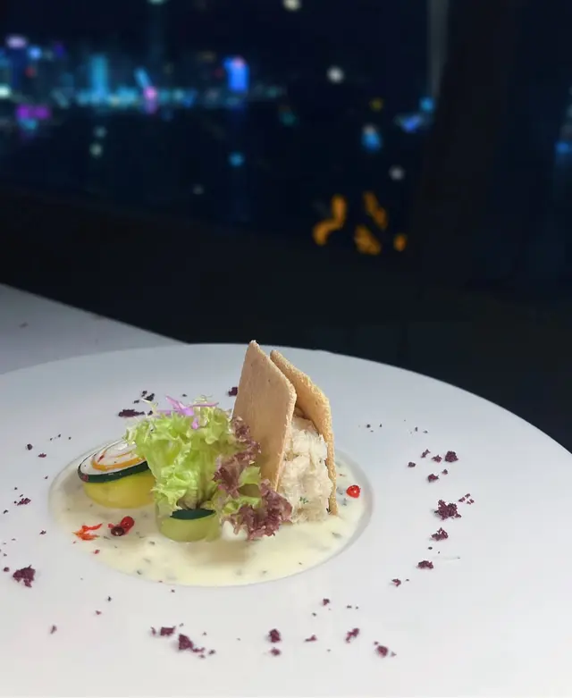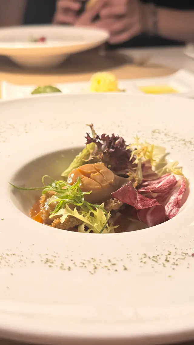 係港島海逸君綽酒店41樓既Le 188° 餐廳及酒廊,有靚維港夜景同Live Music🎶,氣氛恰到好處,最緊要唔會過分喧鬧,同朋友聚會定浪漫晚餐,傾計食野都好岩☺️.🍽️餐前小食:慢煮鮑魚豉油汁啫喱冷盤鮑魚慢煮處理過,質地爽口彈牙,入口軟滑,有微微鮮甜~配左豉油汁啫喱,醬汁甜而不膩,真係好回味無窮😋.前菜(二選一):🍽️海鮮幕絲脆餅配意大利青瓜千層及白酒忌廉汁海鮮mousse入口細膩,配清爽既意大利青瓜千層,好清新既口感;白酒忌廉汁濃而不重,同海鮮嘅鮮甜完美融合,好refreshing😜.🍽️松露鴨肝凍批配蘑菇及櫻桃啫喱鴨肝質感滑順,入口即化,松露嘅濃郁香味同蘑菇、酸甜既櫻桃啫喱形成完美搭配,層次分明,最愛係佢😝.🍽️是日餐湯:白松露蘑菇湯 白松露幽香撲鼻,味濃而不膩,配芝士法包條烤到好香脆,芝士鹹香同濃湯好match🤩.主菜:🍽️意大利羊奶芝士燴飯(配櫻桃汁、蘋果胡椒慕絲、櫻桃慕絲及紅菜頭脆片)燴飯份量十足,飯粒煮到 al dente,咬口恰到好處,羊奶芝士醬汁 creamy 得來無奶騷味,入口順滑~配櫻桃汁同蘋果胡椒慕絲, 令味道更有層次🥳.🍽️香烤美國和牛牛腩扒(配雜蔬菜、新馬鈴薯及紅酒燒汁)和牛牛腩扒烤到岩岩好,牛味濃郁但肉質軟嫩,唔會韌口😮紅酒燒汁令肉香濃縮左之外,令配菜同新薯更惹味~.🍽️甜品:牛奶朱古力蛋糕 蛋糕糕身質地鬆軟🍰朱古力風味濃郁但甜度適中,唔會過膩,配搭細膩嘅奶香,完美為整餐畫上句號💜…查看更多