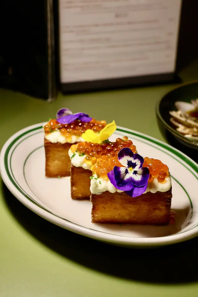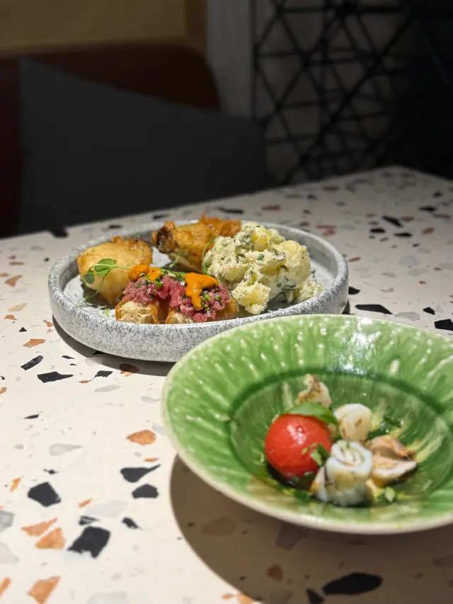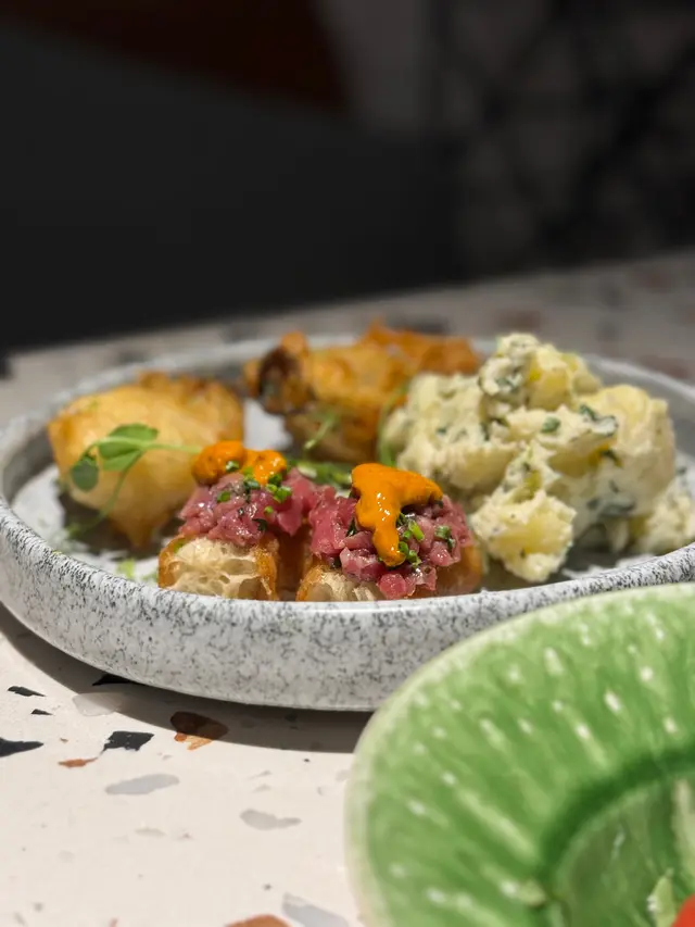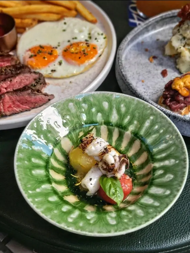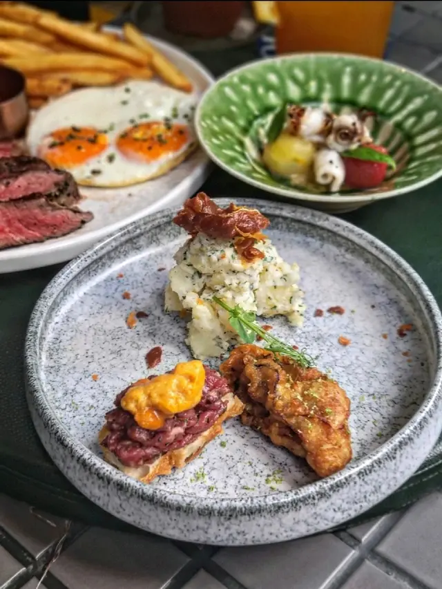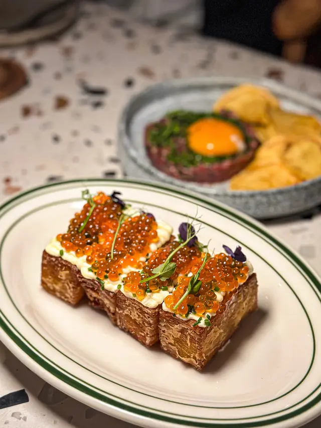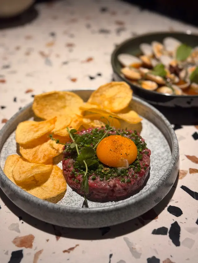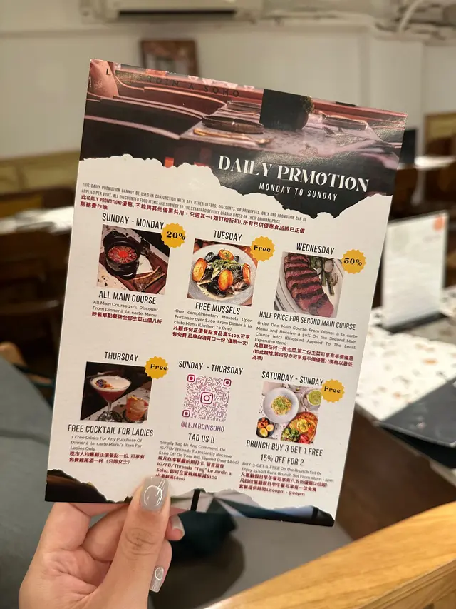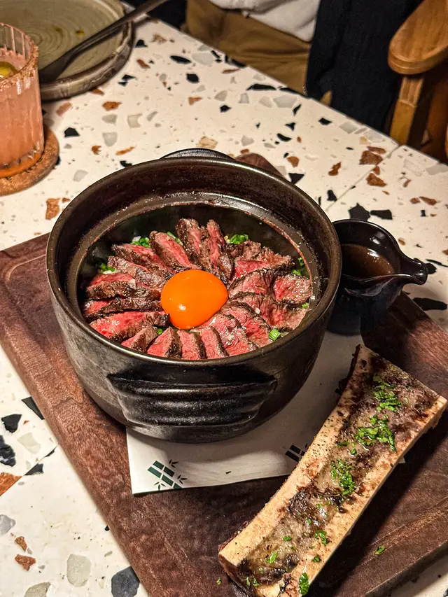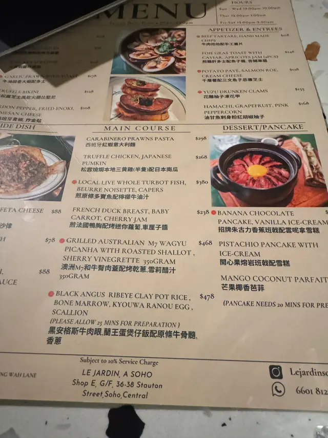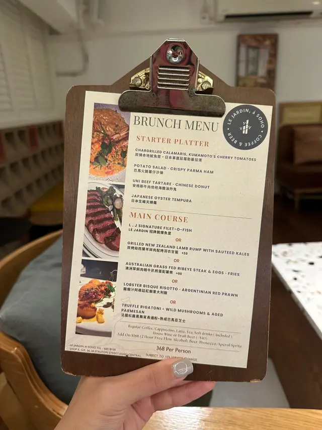 ❝SOHO區酒吧樓上竟然隱藏了這間挺高質的法國菜小餐廳!🇫🇷🍸全部菜式都很不錯!😋❞同一班朋友想喺中環食dinner 上網見到呢個肉眼扒牛骨髓煲仔飯勁吸引 黎到發現樓下係平時成日經過但毫不起眼既bar🫢估唔到樓上係主打法式bistro菜式既小餐館 @lejardinsoho !😳雖然環境未算係最classy始終係樓上舖 但所有菜式都幾高質😬8pm前仲有happy hour所有cocktail /wine都係半價唔洗$50一杯🤭🍸我地都好中意三文魚子忌廉芝士千層薯😚花雕柚子凍花甲酒味香濃花甲粒粒肥美新鮮!✨最令人期待嘅煲仔飯都相當出色😚牛肉粉嫩軟腍燒得好香 店員會將原條牛骨髓刮入飯中撈勻 飯粒充滿牛脂香味 仲有香脆飯焦!😍(不過同行朋友覺得飯焦有點過燶但鍾意食飯焦既我覺得ok!🙂↔️)個飯唔算好大4個人share有d唔夠喉🤣最後甜品見到開心果pancake一定要試下啦! 🥞💚開心果味香濃pancake 軟熟帶蛋香 厚身密度高感覺似蛋糕所以都幾飽肚🤭🍴What we eat…▪️黑安格斯牛肉眼蘭王蛋煲仔飯配牛骨髓 $488 (4.5/5)▪️千層薯配三文魚子忌廉芝士 $128 (4.5/5)▪️花雕柚子凍花甲 $155 (4/5)▪️牛肉他他配手工薯片 $218 (4/5)▪️炸蘇格蘭蛋 $118 (3.5/5) ▪️開心果熔岩班戟配雪糕 $158꧁꧁ ——𝓂𝑜𝓇𝑒 𝒾𝓃𝒻𝑜𝓇𝓂𝒶𝓉𝒾𝑜𝓃—— ꧂꧂📍Le Jardin à Soho中環蘇豪士丹頓街36-36B號地下E號舖 @lejardinsoho 🗺𝘐𝘯 𝘵𝘩𝘦 𝘴𝘢𝘮𝘦 𝘭𝘰𝘤𝘢𝘵𝘪𝘰𝘯…#joys_中環🔖𝘔𝘰𝘳𝘦 𝘴𝘪𝘮𝘪𝘭𝘢𝘳 𝘤𝘶𝘪𝘴𝘪𝘯𝘦/𝘧𝘰𝘰𝘥…#joys_西式 #joys_法國菜…查看更多