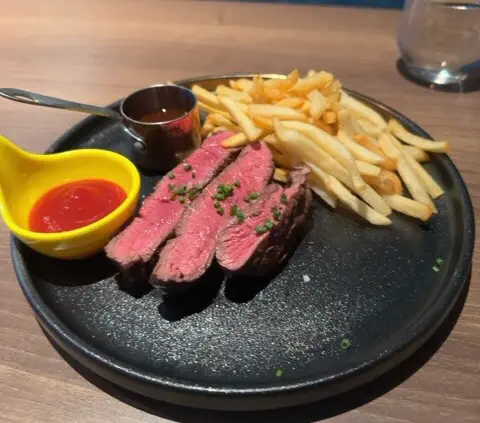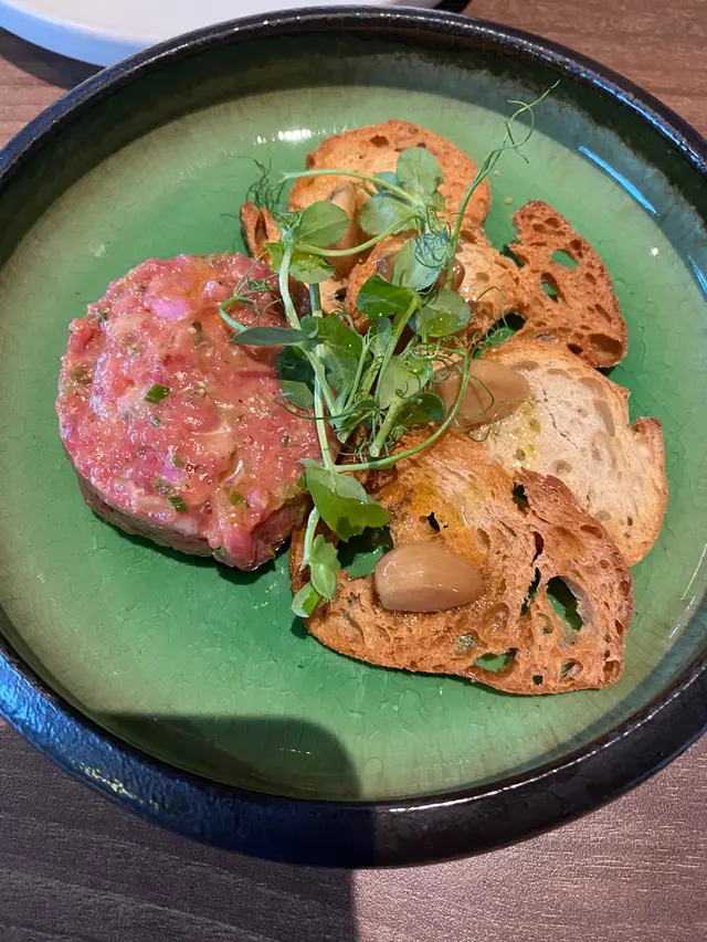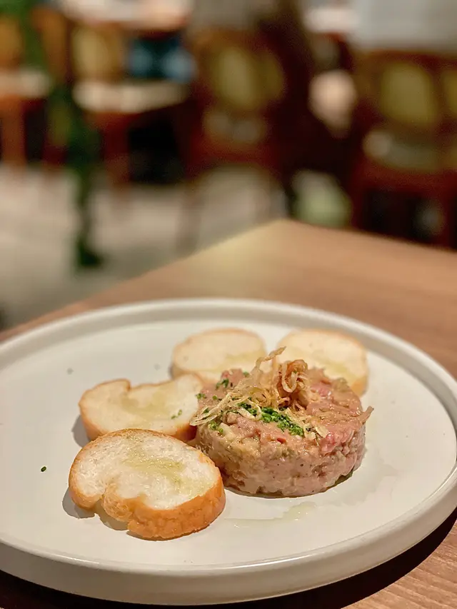 上年除夕訂了將軍澳海傍這家西餐廳,看過網上介紹是由前洲際扒房1881 THE STEAK ROOM廚師擔任顧問的扒房,被喻為最強扒房,可是光顧後卻有點失望。因為是除夕夜,餐廳提供的是聖誕節慶的餐單,跟平常的餐牌有點不同。我和朋友點了一個前菜和兩個主菜,沒有套餐,都是散叫,性價比不高。✧ 生牛肉他他生牛肉應該是粉粉嫩嫩的,但不知道為何這道生牛肉的顏色看起來有點像熟吞拿魚顏色,不過吃起來味道沒什麼問題,面包出乎意料的鬆脆。✧ 豬肋條配酸蘿蔔點的是主菜,但端上桌的時候以為是小食,只有兩串串燒,味道還好,但份量卻有點少。✧ 威靈頓牛柳因為看到網上介紹,他家的牛扒應該質素不錯,所以還挺期待,但是有點小失望,牛肉味不算濃郁,個人認為另外有些牛扒餐廳的牛扒比它還要好吃,不計小費也要差不多四百塊,有點不划算。雖然坐落海傍,環境幽靜,但就個人而言,不太推薦的一家餐廳。Le Marché Steak & Frites📍地址:將軍澳唐俊街21號翩匯坊地下G25號舖…查看更多