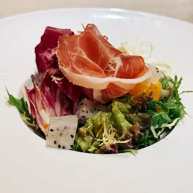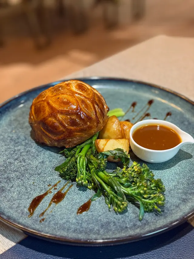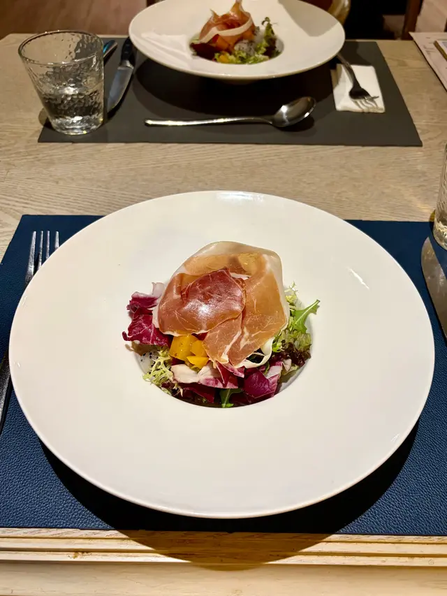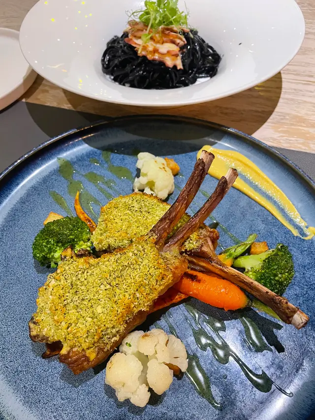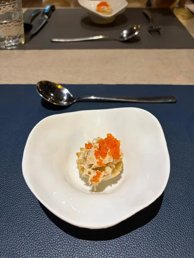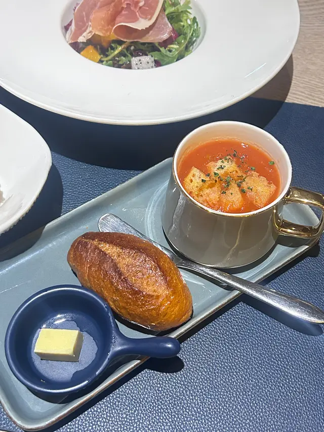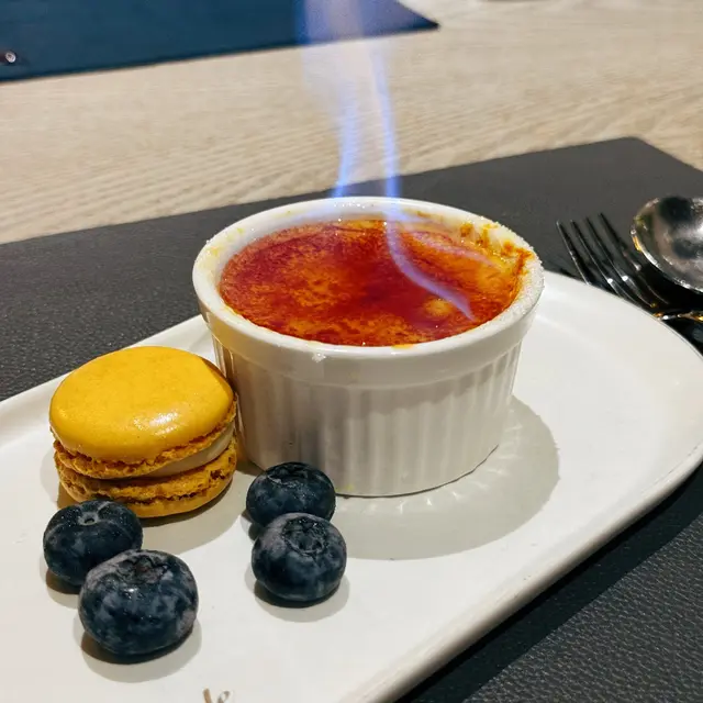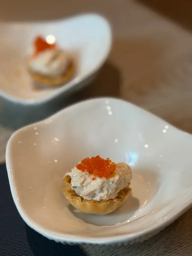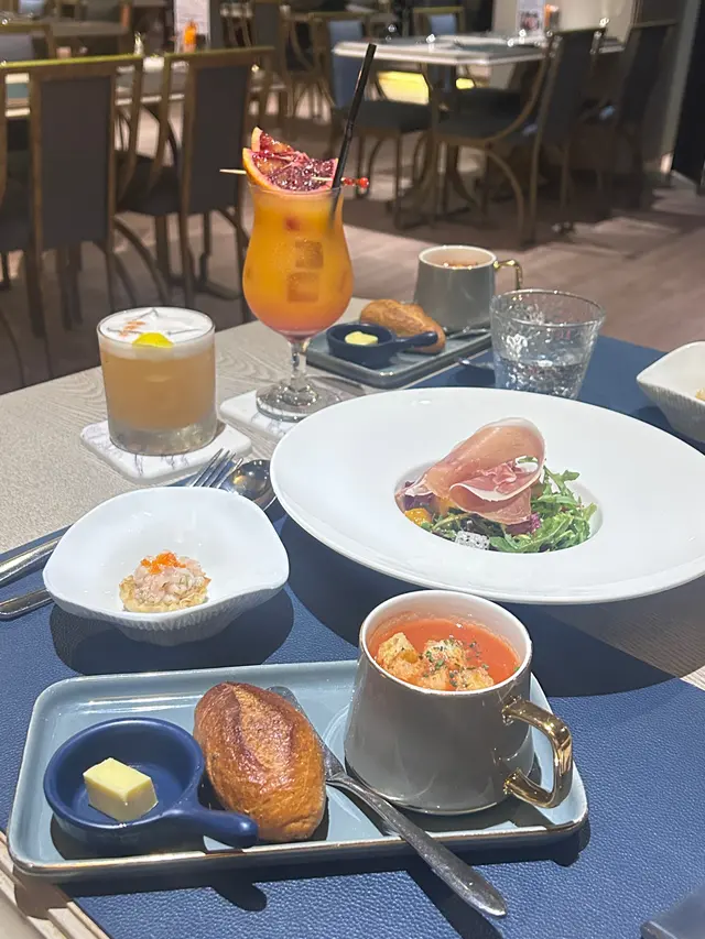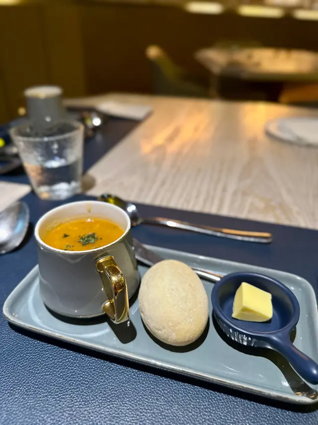 觀塘🚇呢間隱世法式餐廳 Le Monde 🇫🇷 一入到去即刻俾佢嘅環境佈置吸引住✨,灰藍色嘅主調配搭工業風水泥牆身🧱,加上好大嘅梳化休閒區🛋️,同埋 Live Music 舞臺🎤,成個感覺高級得嚟又帶點悠閒😌,真係好適合情侶或者朋友嚟chill吓💑。枱同枱之間嘅空間好闊落👍,坐得好舒服😊,連餐具都好有心思🍽️,每隻碟都印有餐廳名🏷️,細節位都做得好好👌。今次我哋揀咗個法式✌️二人晚餐,食品有多款選擇📋,價錢亦都幾抵💰。首先上場嘅係餐前小點蟹肉沙律撻🦀,呢個撻仔細細粒,但味道好驚喜😲,蟹肉沙律鮮甜creamy🦀,配上鮮味嘅飛魚籽同埋鬆脆嘅撻皮,一啖咬落去😋,口感層次好豐富🌈,真係開胃又好味👏。跟住就係西班牙火腿鮮果沙律🥗,沙律菜新鮮爽脆,配搭多汁嘅鮮果🍓,甜甜哋好清新🍊。最正係嗰幾片西班牙火腿🇪🇸,鹹香十足,同鮮果嘅甜味互相輝映💫,食落完全唔會膩😍,反而帶出另一種風味🌟!之後就到咗♨️暖笠笠嘅廚師精選餐湯🥣。今日嘅餐湯係忌廉蘑菇湯🍄,湯頭非常濃郁香甜🤤,飲落去好creamy,而且熱辣辣好舒服☺️。主食方面🍽️,我哋揀咗西班牙辣肉腸薄餅🍕,薄餅批底烤得恰到好處🔥,邊緣好鬆脆,中間又鬆軟😋。辣肉腸嘅鹹香同微辣味🌶️,配上濃郁嘅芝士🧀,每一啖都好惹味💥。薄餅上面仲有啲香草同番茄🍅,令到味道更加平衡,唔會太膩👍。另一道主菜係🍯蜜糖芥末焗比目魚扒🐟,比目魚扒焗到金黃色✨,外皮微脆🔥,魚肉就非常嫩滑😍,一切就散開,而且冇骨,食得好方便👏。蜜糖芥末醬汁甜甜哋帶點微辣🌶️,同魚肉嘅鮮味好夾💫,完全唔會搶走魚嘅原味,反而提升咗成道菜嘅層次🤩。配菜有啲🥒青瓜同埋金筍粒🥕,新鮮得來仲吸收晒魚汁嘅精華🌊,好味到連汁都想舔埋。最後當然唔少得🍮甜品環節啦!今次嘅精選甜品係小蛋糕配馬卡龍🍰,小蛋糕鬆軟濕潤🤤,甜度適中👍,配上精緻嘅馬卡龍🌈,外脆內軟✨,甜而不膩💖,為呢個法式晚餐畫上完美句號。…查看更多