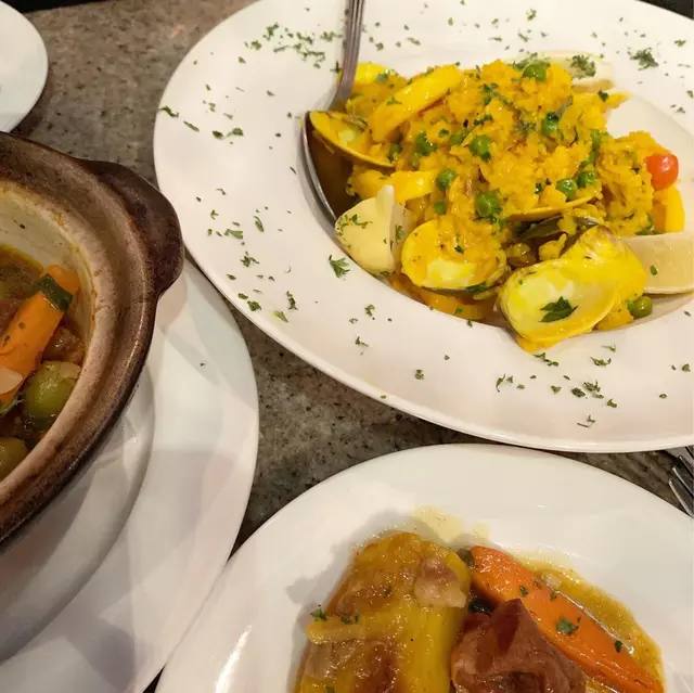 #lesoukhk 香港少有的中東北非菜再加米芝蓮推界,決定要一戰這間異國餐廳。餐廳裝修設計都用上非常鮮明的顏色,帶有異國情調的氣氛,相當不錯。我約晚上 8點到餐廳,都差不多座無虛席,厲害😁其實餐廳招牌菜是以羊,羊cheese 為主打,如果喜歡吃羊的朋殺,一定不能錯喔!!🔹Egyptian Mezze Platter $210 埃及拼盤:一個小吃拼盤有埃及麵包餅配羊乳酪,橄欖,摩洛哥豆蓉,茄子蓉等等,味道好特別,比軟重香料味,可以一次過嘗試不同的特色小菜,值得一試👍👍👍🔹Seabass Tagine $245 這是一個小尖塔形狀的熱鍋,北非菜特式。鍋裡有很大和厚身雪白的海鱸魚塊,質感滑嫩。鍋底內墊上了薯仔才將魚肉放上還放上兩片有小香豆的檸檬片。煮法很新鮮,味道、器具都充滿異國味道,很像身在中東一般😀😀😀🔹Moroccan seafood paella $210 摩洛哥海鮮飯 ,都幾多海鮮🦐🦑🐚🐟飯是瘦長的,不知道是否有摩洛哥的味道,因為還沒到過摩洛哥,哈哈!整體不錯,海鮮汁都撈在飯中😋😋😋Le Souk地址: 中環蘇豪區士丹頓街4號地下電話: 25222128…查看更多