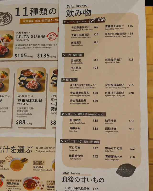 這間來自日本東京的人氣一人火鍋品牌—LETASU登陸香港,分店愈開愈多已經擴充到四間,沙田、銅鑼灣及元朗,第四間位於九龍Elements圓方,主打性價比極高的一人火鍋。店內裝潢沿用日本東京本店的和風美學概念,裝潢以和風木材為主,特別與本地公司「Plant Plant」合作組成「特色植物打卡牆」,是必影相的打卡點!清爽柑橘醬油出汁套餐(250g) - 優惠價$138 (原價$340)全新湯底以柑橘醬油為基底,再加入四季橘果香的清爽柑橘醬油出汁,酸甜平衡且果香馥郁,輕盈清新又健康無負擔,交織出細膩清爽感;美國認證安格斯牛板腱結實又不失彈性,牛肉風味濃郁且肉汁豐富,還有牛肩胛肉。特選壽喜燒套餐(200g)- $188特選壽喜燒湯底有著經典的濃郁鮮甜,層次又豐富,帶有輕微醬香,能突出食材本身的鮮味,風味濃郁,推介!每款套餐均包括野菜盛合五彩繽紛的新鮮蔬菜鮮嫩翠綠,平衡肉膩感。涼拌芝麻菠菜 & 主食(白飯)脆嫩多汁的菠菜,有濃醇的芝麻醬香氣。日本乳酪味軟雪糕 - 優惠價$15 (原價$20)絲滑無顆粒的軟雪糕酸甜平衡,酸甜乳酪融合濃郁牛奶香氣,清爽不膩且冰涼滋味。…查看更多