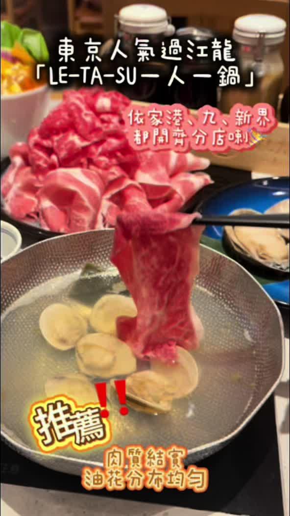 日本東京主打「一人火鍋」嘅人龍店「LE-TA-SU 一人一鍋」@letasuhk 為慶祝進駐香港一周,近日就宣佈陸續開3間新分店!今次我就率先到銅鑼灣時代廣場店試埋佢地一週年限定「贅沢法式龍蝦湯套餐」!銅鑼灣新店內設計特色系用有機植物組成嘅「打卡牆」!!令用整個環境充滿大自然氣息,而且更舒適明亮./贅沢法式龍蝦湯套餐全新贅沢法式龍蝦湯以龍蝦萃取精華後加入忌廉&白蘭地熬煮近3小時!!最後再融入醇厚嘅海老味噌同香濃法國牛油 令呈鮮橙色又濃郁嘅龍蝦湯集齊「鮮・醇・滑」豐富嘅層次感套餐配搭日本黑毛和牛前胸腹同美國豬肩肉黑毛和牛布滿大理石霜降紋理 肉質細膩富豐腴牛脂和香氣豬肩肉就肉質柔嫩 充滿肉香如果想再食得奢華少少可以$88追加半只每日限量供應嘅波士頓活龍蝦肉質爽彈又鮮甜 令龍蝦湯鮮味再昇華!!LE-TA-SU套餐除咗週年限定套餐外仲有各款套餐可以選擇今次就揀咗人氣No.1嘅LE-TA-SU套餐湯底一共有4款 我就+$9點咗充滿藥膳香料麻辣湯 而肉類方面可以可以選擇200g/300g肉 包括美國特選安格斯牛肩胛肉・美國豬肉眼・牛舌套餐仲包括前菜•主食(自選:稻庭烏冬•八谷米•葛絲)•野菜盛合野菜盛更同多個本地農場合作 嚴選多款時令新鮮野菜 相當新鮮法式龍蝦湯軟雪糕最後想嚟個完美嘅總結嘅話就一定要叫埋佢地嘅法式龍蝦湯軟雪糕!用濃縮海老味噌同北海道3.5牛乳雪糕做base再淋上贅沢法式龍蝦湯以及配搭香脆「最中餅」咸甜交織 濃郁又香甜 不論口感同味道充滿層次感…查看更多