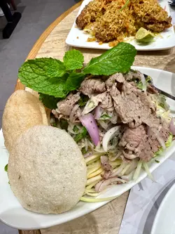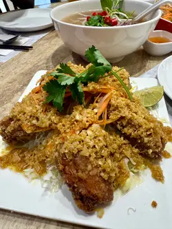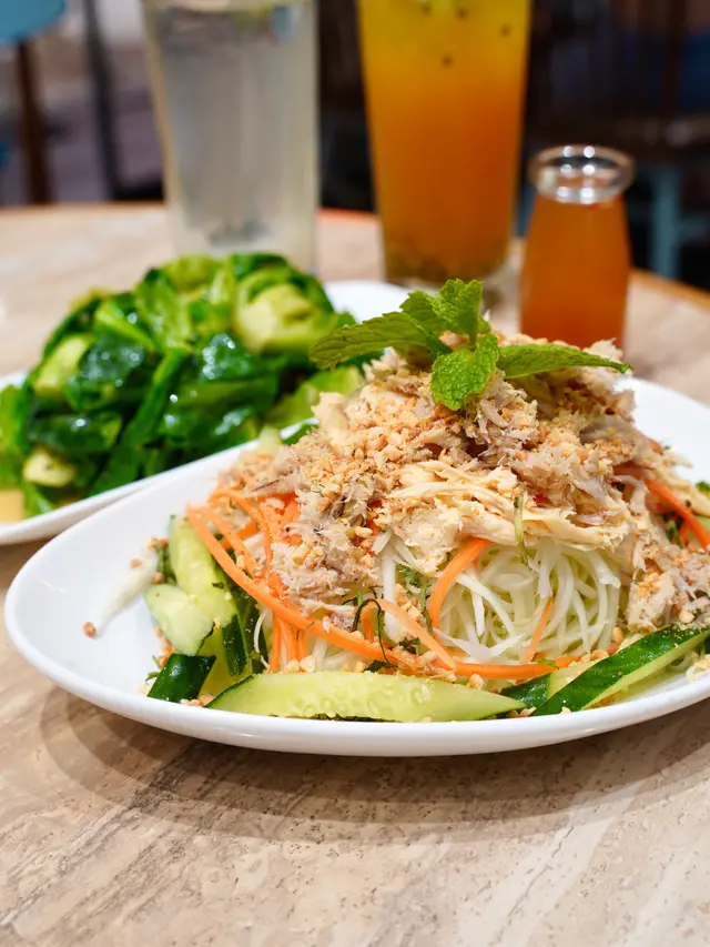 今日發現鬧市商場裏有間越南餐廳,見到餐牌入邊有越式小火鍋,從來都未食過就入去試吓,呢度嘅餐牌都幾多選擇,仲有好多優惠菜式,今日就試咗 1. 越式牛柳沙律 goi vo tai $88原價103特價88先嚟一個開胃菜,類似平時成日食嘅木瓜沙律,加埋越式牛柳,側邊仲有啲蝦片可以俾你自製沙律杯 2. 牛油雞翼 Ganh Ga Chien Bo $78原價$88特價$78 一上枱即刻聞到勁大浸牛油香,炸得酥脆嘅雞翼鋪滿炸蒜,香味十分濃郁,外脆內嫩,夠晒惹味 3. 扎肉蒸粉包 banh cuon cha lua $82 這個建議蒸完要即刻食,因為下面墊住蝦片,如果放漏咗下面蝦皮就會腍,感覺有啲似客家客家蘿蔔粄,配上獨特嘅越式醬汁,已經可以當一個主食 4. 海鮮帽子酸辣鍋 Lau Hai San $380 我最期待嘅小火鍋出嚟啦,可以有牛或者海鮮選擇,不過我已經揀咗最鍾意食嘅牛肉pho,所以呢個就揀海鮮,蝦都好多膏,魷魚估唔到咁好食,最特別嘅係呢個湯底真係好少響出邊食到,值得一試 5. 越式吊龍湯粉 pho with rib eye $82係我最鍾意嘅越南美食,必須要點,越南小黃牛肉粉系列,濃郁牛肉香味,匙柄雪花同吊龍,最鍾意pho 既湯底,牛味濃郁 6. 精選甜品拼盆 $118 好靚靚既擺盤,估唔到有cream brûlée, yummy,全部都係我鍾意既甜品,糕點煙韌好味,芒果糯米飯啲芒果都好甜好好味 另外有新出既特飲,揀左百香果綠茶特飲$36 椰青水椰果特飲 $45,東南亞嘅必點飲品…查看更多