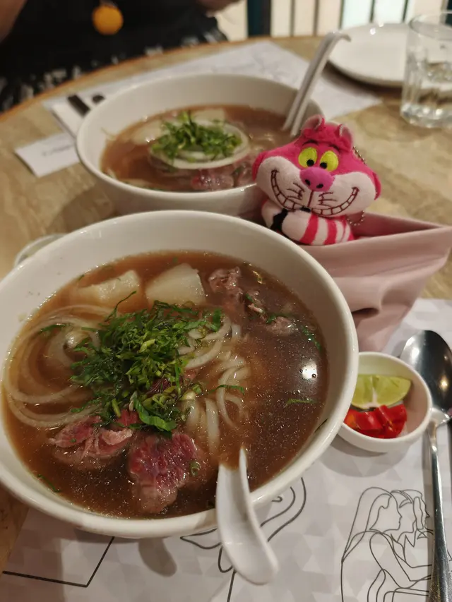 今日發現鬧市商場裏有間越南餐廳,見到餐牌入邊有越式小火鍋,從來都未食過就入去試吓,呢度嘅餐牌都幾多選擇,仲有好多優惠菜式,今日就試咗 1. 越式牛柳沙律 goi vo tai $88原價103特價88先嚟一個開胃菜,類似平時成日食嘅木瓜沙律,加埋越式牛柳,側邊仲有啲蝦片可以俾你自製沙律杯 2. 牛油雞翼 Ganh Ga Chien Bo $78原價$88特價$78 一上枱即刻聞到勁大浸牛油香,炸得酥脆嘅雞翼鋪滿炸蒜,香味十分濃郁,外脆內嫩,夠晒惹味 3. 扎肉蒸粉包 banh cuon cha lua $82 這個建議蒸完要即刻食,因為下面墊住蝦片,如果放漏咗下面蝦皮就會腍,感覺有啲似客家客家蘿蔔粄,配上獨特嘅越式醬汁,已經可以當一個主食 4. 海鮮帽子酸辣鍋 Lau Hai San $380 我最期待嘅小火鍋出嚟啦,可以有牛或者海鮮選擇,不過我已經揀咗最鍾意食嘅牛肉pho,所以呢個就揀海鮮,蝦都好多膏,魷魚估唔到咁好食,最特別嘅係呢個湯底真係好少響出邊食到,值得一試 5. 越式吊龍湯粉 pho with rib eye $82係我最鍾意嘅越南美食,必須要點,越南小黃牛肉粉系列,濃郁牛肉香味,匙柄雪花同吊龍,最鍾意pho 既湯底,牛味濃郁 6. 精選甜品拼盆 $118 好靚靚既擺盤,估唔到有cream brûlée, yummy,全部都係我鍾意既甜品,糕點煙韌好味,芒果糯米飯啲芒果都好甜好好味 另外有新出既特飲,揀左百香果綠茶特飲$36 椰青水椰果特飲 $45,東南亞嘅必點飲品…查看更多