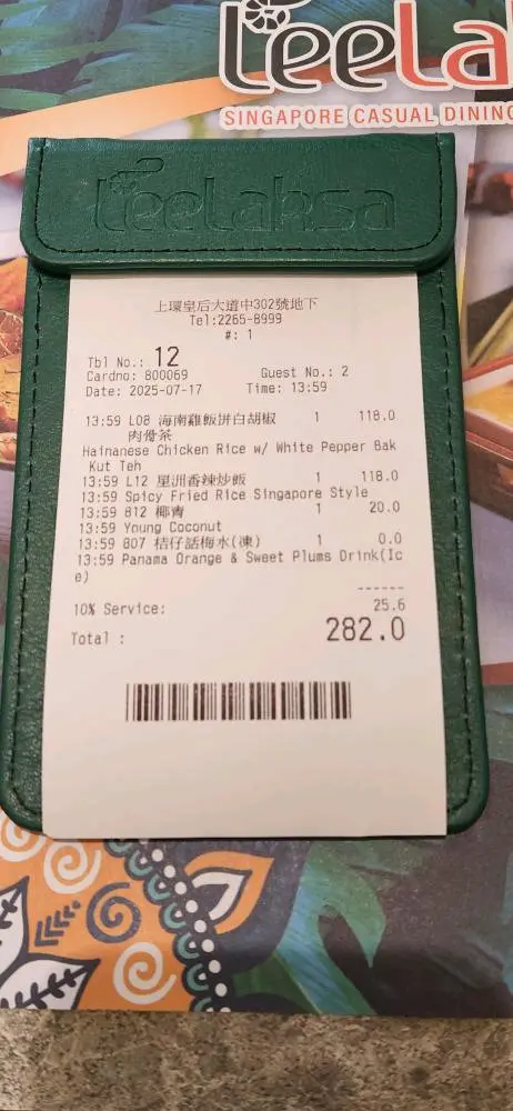 餐廳:LeeLaksa地點:上環皇后大道中菜式:新加坡馬拉菜式餐牌:茶餐14選一,有多款飯粉麵,仲有多士同沙律小食,配冷熱飲品8選一。另收加一。星期日下午茶時間由三點半開始。新加坡喇沙 $62 另加一新加坡喇沙有去殼蝦兩隻開邊,炸魚蛋3粒,彈牙炸魚蛋絲幾條,吸汁豆卜4件,半隻糖心蛋,好多爽口芽菜,通菜同紫洋蔥,面頭灑上脆脆,材料豐富。個喇沙湯好香滑,辣度剛好,梛汁又夠,好惹味。白色麵條滑溜煙韌都吸湯,唔錯。另上青桔一粒同參峇醬比你自己調味。海南雞飯 $68 另加一海南雞有十幾件,有雞脾,雞胸同雞翼,肉質好嫩滑,雞皮有彈性,點甜豉油最好食,另外仲有辣醬同薑蓉。配多條爽口青瓜。油飯好香,暖暖地上枱,都大大碗。跟有一碗冬瓜湯,飲落鹹鹹哋,好濃雞味,仲有一舊冬瓜食。串燒拼盤 $68 另加一串燒拼盤有雞肉同大蝦各3串,擺盤唔錯。串燒熱辣辣燒起,蝦已去殼,肉質好爽脆,連蝦殼都勁脆。雞肉串好多肉食,咖哩味濃,係香辣黃咖哩味,外皮整得少少脆。辣醬另上,點埋味道更惹味。伴有青瓜粒,紫洋蔥同車厘茄可以減減膩。小食都跟飲品。香茅橙茶 (跟餐)香茅橙茶有大大條香茅同大大片鮮橙,飲落係好香甜橙味,茶味唔濃,有d似果汁,叫左少甜都夠甜。香茅青檸荔枝梳打(跟餐)跟餐飲品都有幾款揀。香茅青檸荔枝梳打真係有大大枝香茅,味道完全唔甜,似梳打水,解渴得黎又唔會太肥,荔枝味道主要係底部,建議搞起先飲。凍馬來拉茶 (跟餐)馬來拉茶冷熱都得,唔洗加錢,叫左走甜。馬來拉茶飲落好滑溜,味道甜度適中,唔甜唔苦。桔仔話梅水(跟餐)桔仔話梅水有大大粒青桔同話梅,仲有好多桔皮喺底,味道甜甜地,感覺養生。總括而言,食物質素保持一貫水準,主食價錢特別抵食,星期日下午茶好旺場。…查看更多