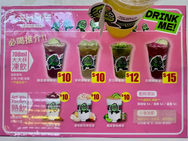 LEMMIE Lemon Tea (葵芳) 網址: https://s.openrice.com/QrbS0juOC00 地址: 香港葵芳葵富路7-11號葵涌廣場1樓1091號舖 電話: +852 93098142