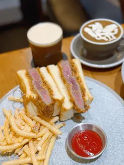 位於宋王臺地鐵站左近有一間好多公仔和拉花好靚 Café.Beef Sando $150日式牛肉三文治(五成熟)配薯條人氣必食👍牛肉有五成熟顏色粉嫩,牛肉厚身,食落Juicy又嫩口。 再配上香脆麵包和醬汁,令人回味無窮😋Mushroom Risotto $135蘑菇意大利飯意大利飯配菜有磨菇,上面有好多炸蒜好特別增添了風味。內面還加左榨菜味道更有層次。飯的口感剛剛好,汁均勻地沾滿意大利飯🍽追加$35 餐湯 和 $35沙律今日餐湯係薯仔忌廉濃湯👍沙律用左我最喜歡黑醋,十分開胃Hot Matcha latte 💚☕️抹茶拿鐵,牛奶和抹茶味道平衡得好好,奶打泡後飲落十分香滑,口感的綿密度剛好。拉花的圖案係海馬😍Hot Mocha 🤎☕️如果你喜歡濃郁咖啡和巧克力味道,這個就啱曬,好有層次味道回香醇濃郁。深啡黑色可增加拉花圖案視覺,圖案係獨飛馬🐎👍坐位不算太多,環境清靜舒適,適合傾談。好有心思擺設,好多可愛流行公仔,可一邊食一邊欣賞,店員有禮🥰Lento 📍香港九龍城太子道西428-430號地舖 (Hong KongG/F, 428 Prince Edward Road, West Kowloon City)…查看更多