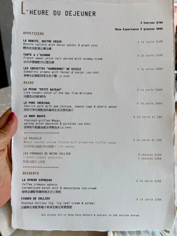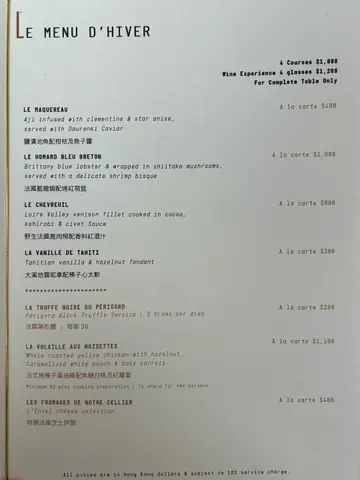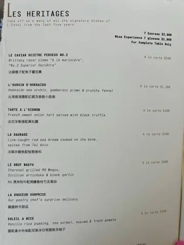 This Michelin 2-star French restaurant is located on 3/F of The St. Regis Hong Kong, led by Chef Oliver Elzer. My last visit was already four years ago, and I was surprised the staff greet and welcome us back, apparently having kept records of all prior visits.Seated comfortably at a large table, the décor and ambience has not changed much from my memory, with a premium and refined vibe, elegantly furnished with everything carefully arranged to create an ambience suitable for special occasions.We have chosen Les Heritages ($2,988 each), with also the 7-Glass Wine Experience ($1,888). To start, I have an additional glass of Pierre Gimonnet Oger Grand Cru ($320). The chef has prepared some Israel Spice Crisps, together with a dipping sauce made of shallot and vinegar emulsion. A nice snack to enjoy with the aperitif.The Amuse Bouche is a Duck Terrine, with a layer of foie gras on top, plus some slices of peach. The terrine and foie gras are immensely flavourful, with a creamy softness in contrast to the crunchy bite of the peach. Interesting and delicious, a very good start.A ‘new’ service which I did not experience in the last visit is that the butter is prepared tableside, by scooping some prized caviar to put inside the scooped house made butter, which has been mixed with Champagne, to enjoy with the brioche, sourdough and batard. They are so good I cannot help finishing all the bread even before the first course.To pair with the food, the first wine is Pierre Brocard Coteaux Champenois Blanc 2021. An interesting choice, a still wine from Champagne with a 50/50 blend of Pinot Noir and Pinot Blanc, it has good acidity and minerality, plus some ripe fruity notes. A good match with the razor clams in the first course.Presented on a long dish is Le Caviar Oscietre Perseus. Featuring Brittany razor clams ‘a la mariniere’, it is served in two ways. First, on a puff pastry, are the thinly sliced clam protrusion, with jelly in the middle, scattered with dried caviar on top, resembling a sunflower. The other highlights the high quality ‘No. 2 Superior Oscietre’. On the razor clam shell is the smooth, rich flavour pressed caviar cream, with additional caviar on top, plus some lightly seared razor clam slices. The flavours are amazing, the clam is sweet in umami with a crunchy bite, while the caviar is smooth and has a wonderful touch of brine and elegant in taste. A dish that is fit to serve to the royals.The second wine is Pierre Menard Laika 2022. The Anjou producer uses old Sauvignon Blanc vines to make this wine, with a nice floral and quince nose, evolving to more stone fruit. Fresh with a good length, it has a riper fruity note than the typical Sancerre to pair well with the prawn in the second course.One of the other signature dishes of the restaurant is L’oursin d’Hokkaido. Inspired by a dish from the renowned Joel Robuchon, whom Chef Oliver has worked with, the beautiful and delicious Hokkaido sea urchin is arranged and served beautifully in a caviar box, on top of the sweet and flavourful gamberoni prawn tartare, mixed with some finely chopped crunchy fennel for texture. With some chives scattered on top for additional fragrance and decoration, each spoon is pure wonders and enjoyment. Not to be missed.The third wine is Domaine de la Nouvelle Donne Neo Nervis. A nice Languedoc biodynamic wine made from Macabeo grapes, it has more body than the last few to match with the food, plus good minerality and citrus, with also flinty notes on the palate.The La Maison Nordique Caviar Oscietre Imperial de Sologne is another piece of art. Sandwiched between the meaty and bouncy textured blue lobster that has been slow cooked and then pan-fried in clarified butter, are brandy ‘blanc manger’, with a gelatin texture. Underneath is the lobster sauce seasoned with tandoori masala spices, with some caviar on top. The elegant, sweet taste of lobster combining with the slight spiciness in the sauce is memorable and excellent in taste.The fourth wine is from Italy, Cantine I Favati, Greco di Tufo Terrantica Etichetta Bianca. Made with 100% Greco Bianco, an old variety that originally was cultivated on the slopes of Mt. Vesuvius, this wine has shown some oxidation characters in addition to mostly citrus and orange blossoms, plus yellow fruit. Good acidity and body to match with the fish.Ombrine de Mediterranee features line-caught ombrine from the Mediterranean Sea, a type of croaker known for its high-quality meat. On the beautifully grilled and seasoned fish steak are some lemon condiments to give acidity to freshen the palate, with the chef adding some tender chili leaf as the side. Together with the delicious butter sauce the rich fish flavours are elevated wonderfully.The fifth wine is Nicolas Reau Garance from Chinon, a natural wine made from Cabernet Franc, macerated for three weeks without any chemical additions and then aged in old foudres for 18 months. The herbaceous characters match well with pork in the main course, with the red fruit also complement with the sauce.For the main we have a choice of pork or beef. Both of us chose Le Porc Iberique ‘Joselito’, with the prized Joselito Iberico pork slow cooked and then glazed with butter to give a caramelized surface, while keeping the flesh perfectly medium rare, juicy and tender. The watercress is prepared in both puree and stir-fried format on the side, with raspberry condiment, pork garlic emulsion, and pork jus combining to give a harmonious symphony. Together with a small snack with braised beef cheek in tiny taco wrap with watercress on top. Excellent on all fronts.The sixth wine is La Maison Romane Manoir du Bais 2013. A nice twist to use cider instead of wine, this bottle comes from Cote du Nuits, with deep notes of ripe apples, aromatic spices and ginger. A lighter and refreshing match with the first dessert.La Douceur Surprise, the pastry chef’s surprise delicacy, uses French figs for different texture. With almo