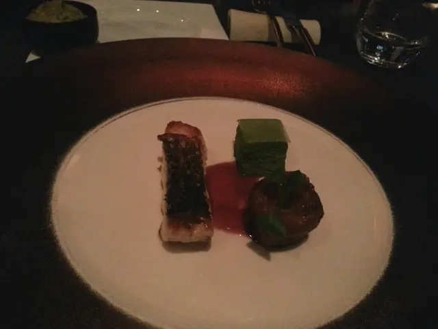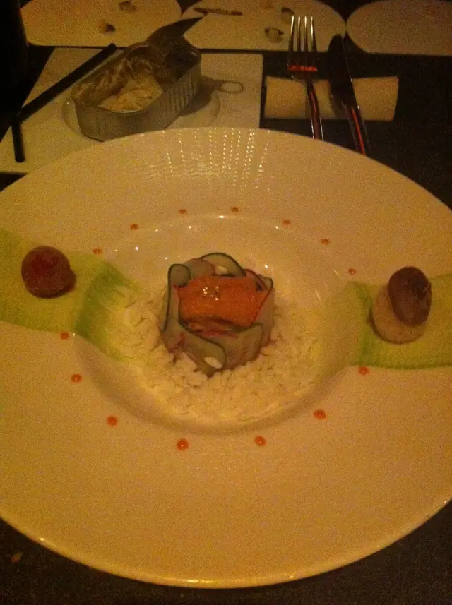 !半爽滑o既小龍蝦刺身帶陣花香,秘熬o既蝦汁唔會過濃或過杰,夾上脆米片食更覺香口,冇得彈呀!熱食方面,第一味係法國餐必定會有o既魚