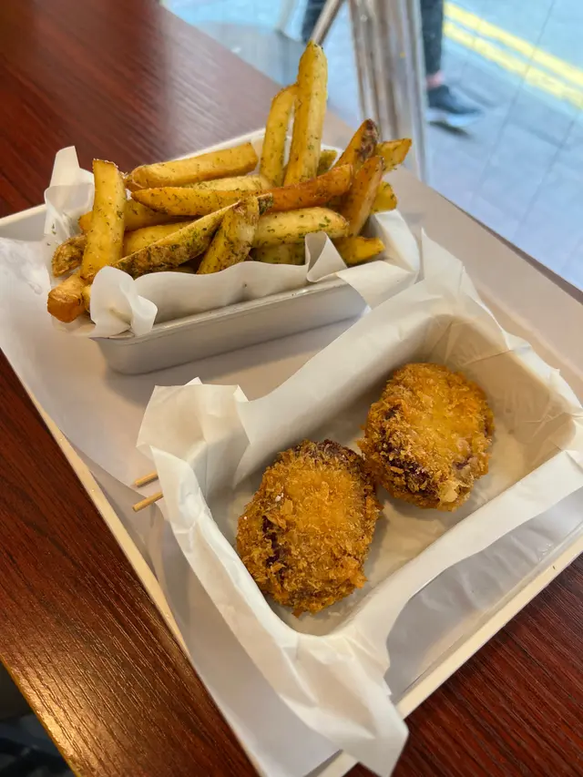 等咗5-8分鐘終於有得食,嘩……睇到嗰樣已經好吸引……土司外面輕輕炸過,裏面鬆軟, 餡料豐富, 滑蛋……薯餅……腸仔……芝士…… 味道好夾!紫薯餅有2件, 剛剛炸起熱辣辣好好味。