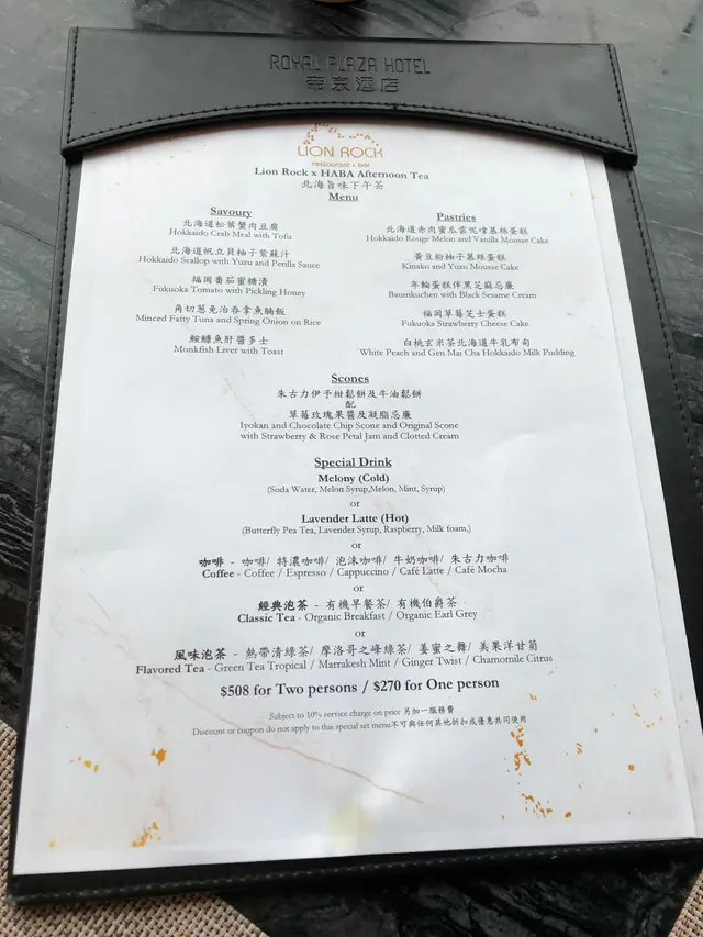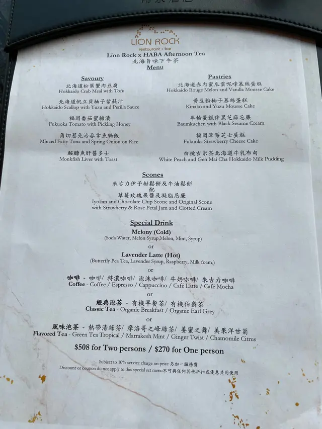 帝京酒店的𝗟𝗶𝗼𝗻 𝗥𝗼𝗰𝗸已經去過幾次,今次終於有得坐窗口,估唔到亦係最後一次🥲 因為之後佢就搬咗落樓下,個靚景要𝗯𝘆𝗲𝗯𝘆𝗲啦。好可惜🥺 不過都𝗽𝗼𝘀𝘁出嚟留個紀念啦💕原來個𝘁𝗲𝗮 𝘀𝗲𝘁做到𝟮𝟬𝟮𝟮-𝟭-𝟮不過地址會喺樓下嘅「香田日式料理」❄️𝗛𝗔𝗕𝗔 𝘅 帝京酒店「北海旨味下午茶」❄️🔸北海道松葉蟹肉豆腐🔹北海道帆立貝柚子紫蘇汁🔸福岡蕃茄蜜糖漬🔹角切蔥免治吞拿魚腩飯🔸鮟鱇魚肝醬多士🔹北海道赤肉蜜瓜雲呢拿慕絲蛋糕🔸黃豆粉慕絲蛋糕🔹年輪蛋糕配黑芝麻忌廉🔸福岡草莓芝士蛋糕🔹白桃玄米茶北海道牛乳布丁🔸牛油鬆餅配草莓玫瑰果醬& 凝脂忌廉🥂🔺𝗠𝗲𝗹𝗼𝗻𝘆🔺𝗟𝗮𝘃𝗲𝗻𝗱𝗲𝗿 𝗹𝗮𝘁𝘁𝗲一直都覺得帝京的下午茶唔錯,尤其係鹹點方面。但今次就遜色咗少少,因為帆立貝同呑拿魚飯唔夠新鮮,其他都比較普通,甜點都好食嘅,甜度適中。個蜜瓜雲呢拿慕絲蛋糕幾特別!上枱有煙🤣 好啱打卡,中間有蜜瓜果凍,味道都不錯嘅!兩個人食仲會免費獲贈一份HABA試用套裝。整體上幾好,坐得舒服,又好好服務,唔知搬咗新地方係點嘅呢🤭…查看更多