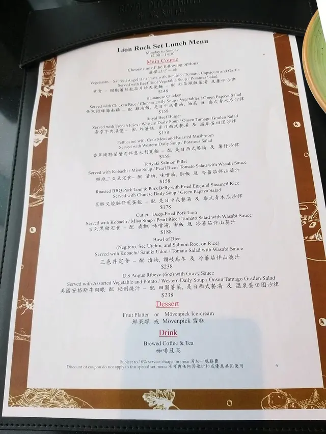 型格餐廳酒吧Lion Rock,提供各國名酒及多款雞尾酒,讓您於輕鬆的氣氛下從特大落地玻璃欣賞香港的著名地標−獅子山並享用精美餐點,滿足味蕾之享受。Lion Rock同時備有一間VIP房THE DEN及另一連接戶外露台的房間HEA。