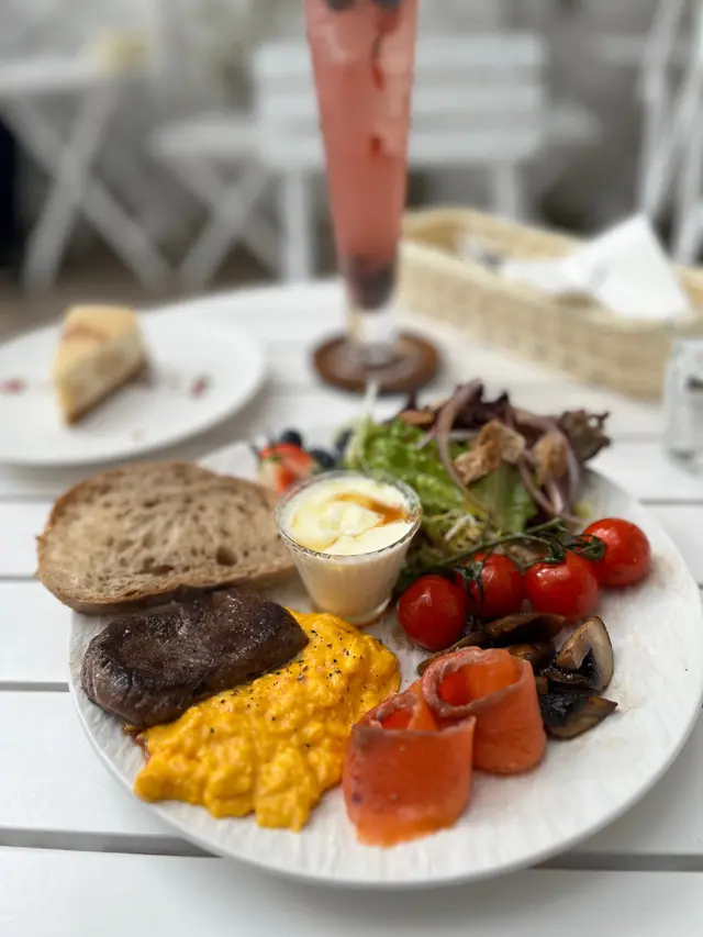 ☁️純白玻璃屋cafe ☁️好休閒舒適嘅感覺☺️ 玻璃屋有白紗、植物🪴同純白色度假風餐桌~ 可以和朋友、寵物來聚一聚,輕輕鬆鬆的All day breakfast 🍳 $128精緻嘅擺盤,豐富嘅食材🫶🏻 有明治牛乳炒蛋、香腸、煙肉🥓串蕃茄、炒蘑菇、酸種包、希臘乳酪雜莓及沙律🥗另外仲可以+28加配煙三文魚或慢煮雞胸煙三文魚芝士牛油果他他牛角包 配沙律🥗 $78有好多人都鍾意嘅牛油果🥑 再加埋豐富Omega3嘅三文魚,同金黃鬆脆嘅律牛角包🥐口感豐富又健康☺️推薦!Rose latte🌹 $44今次嘅☕️飲品我揀左浪漫嘅rose latte☺️ 配合返咁relax嘅環境🌱 latte水準不錯啊Berry Berry 🍓 $54朋友就飲涼爽解渴嘅strawberry, blueberry, honey 🍯 apple juice 😋酸酸甜甜~濃濃果香感…查看更多