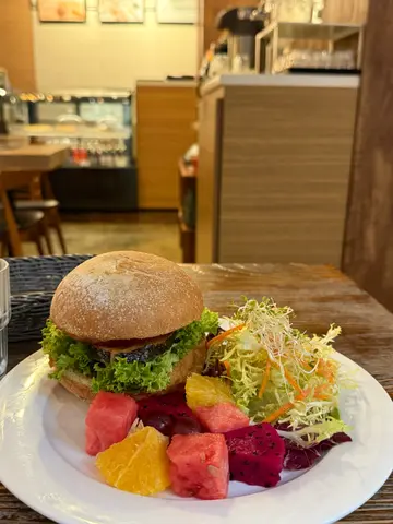 很高興遇到這家純素餐廳,有適合食生raw vegan 的機種沙律,選加購的也很貼心,選擇有牛油果、水果、小盤沙律菜等。選了含橙、火箭菜、碧根堅果的沙律,很新鮮!加購牛油果、水果小盤。朋友加購選了純素蛋黃醬的菠蘿沙律、蛋糕,也很好!環境很開揚舒服,時鐘擺設很有創意。有馬來西亞月餅訂購,其中含低糖的,店也有賣有機食品。很開心有這個好地方!與朋友輕聲聊天、獨自安靜看書發呆,都可以。附近的餐廳,有好幾家週一休息,但這家週一有開。本來約好的那家休息,經過看到這家有開,很幸運!…查看更多