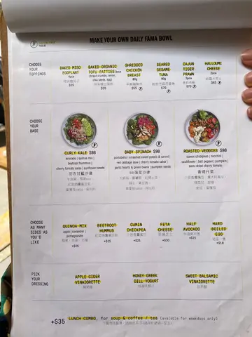 西營盤餐廳多,尤其很多有葷素餐廳也有純素選擇。今次試了Locofama。採用本地蔬菜,支持本地農夫。可以減低碳排放,最重要係新鮮。 MAKE YOUR OWN DAILY FAMA BOWLtoppings: baked miso eggplant 4pcs $40base: curly kale, avocado Quinoa mixbeetroot hummus, cherry tomato salsa sunflower seed $108sides : beetroot hummus $30dressing: sweet balsamic vinaigrette 未試過beetroot hummus所以試吓,beetroot有時會有陣味,呢個醬冇喎,易入口。curly kale新鮮爽脆。我選的都有大量蛋白質:藜麥、鷹嘴豆醬. 顏色、味道俱全。下次再試其他菜式。…查看更多