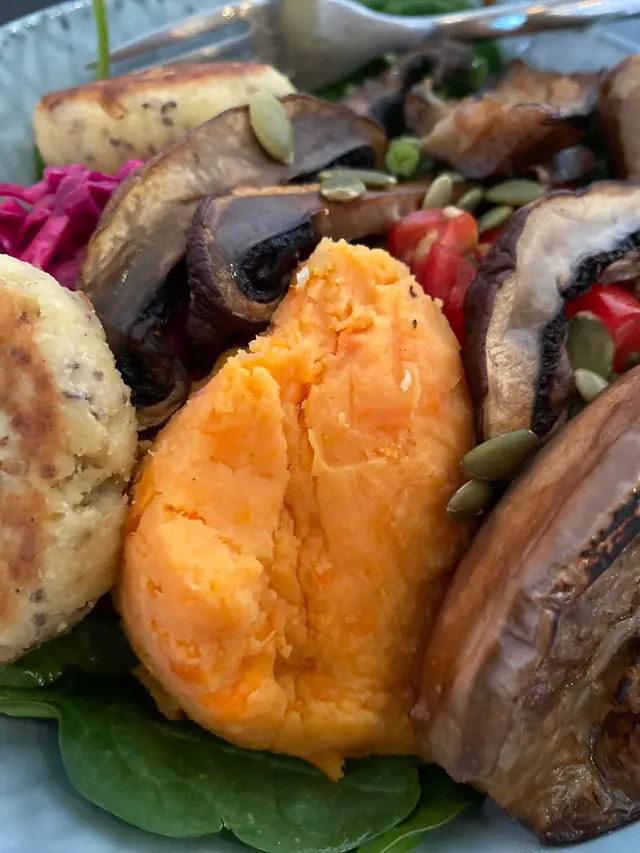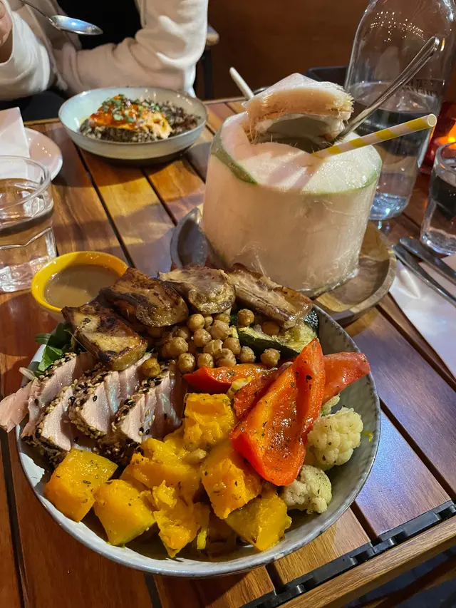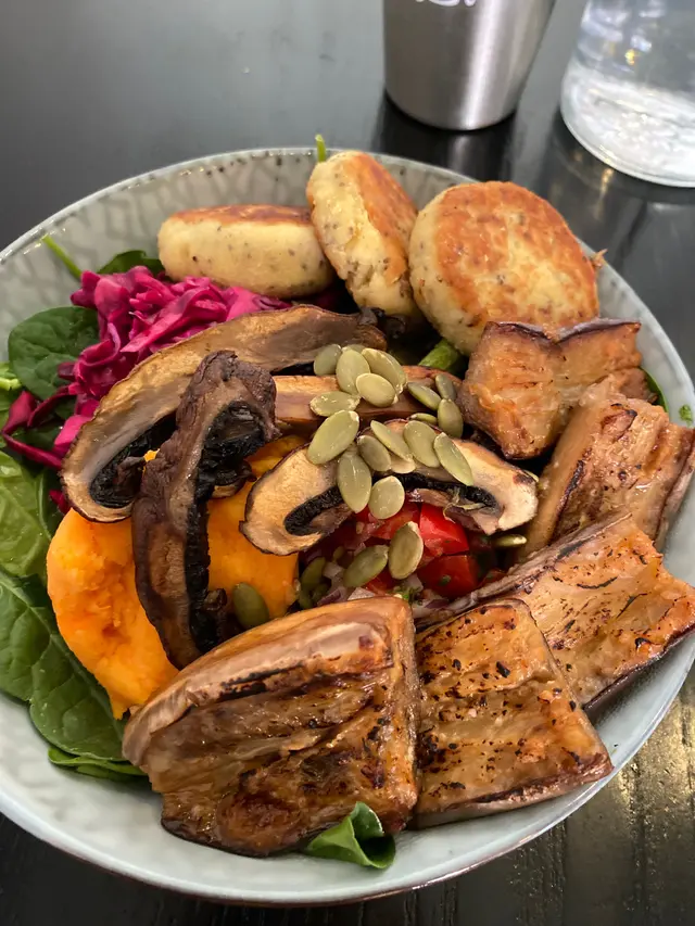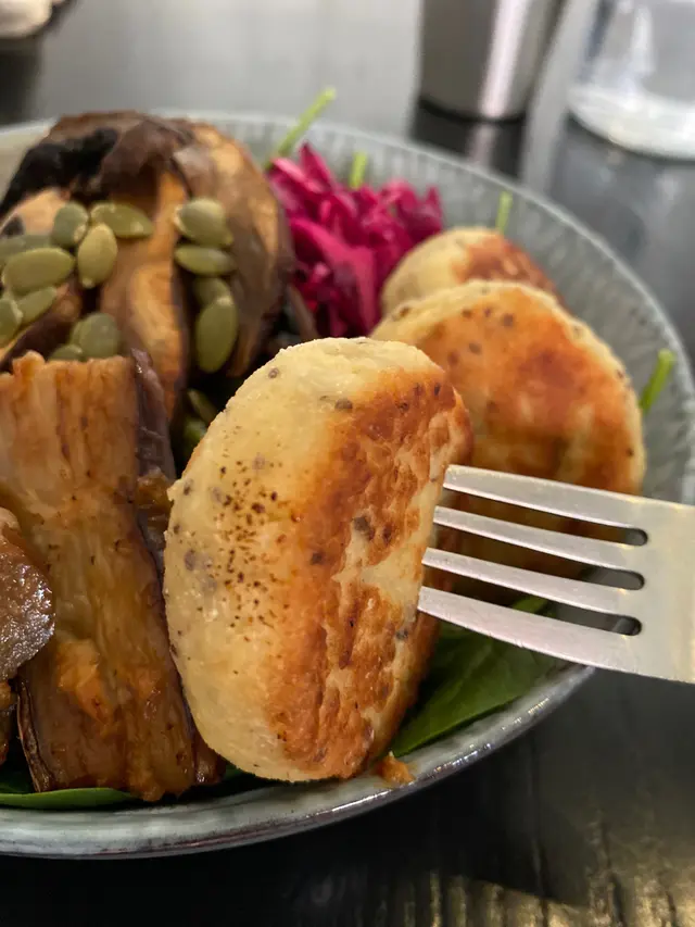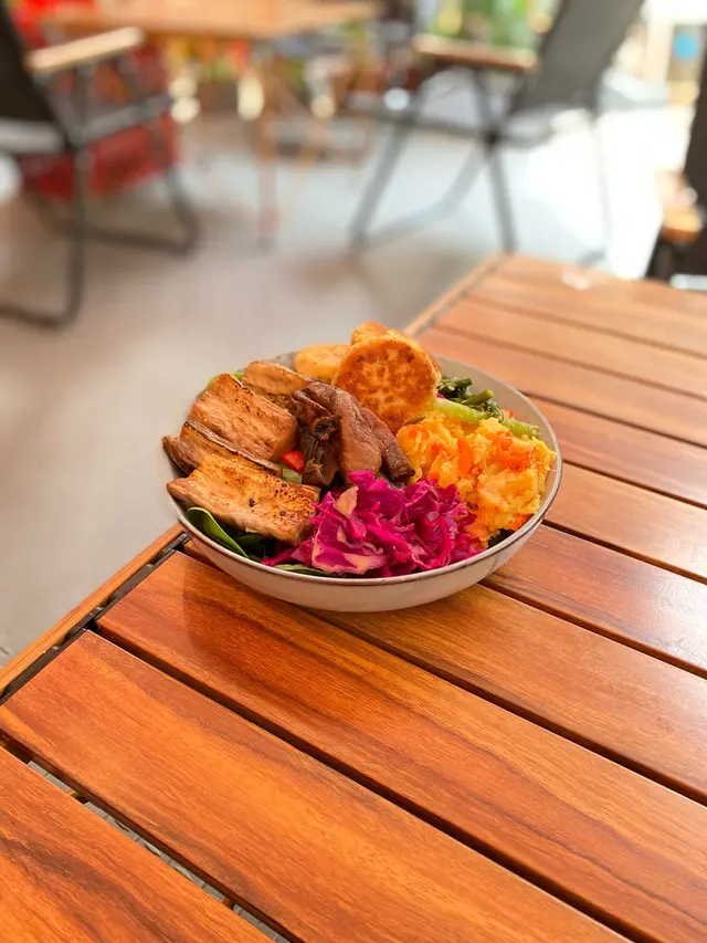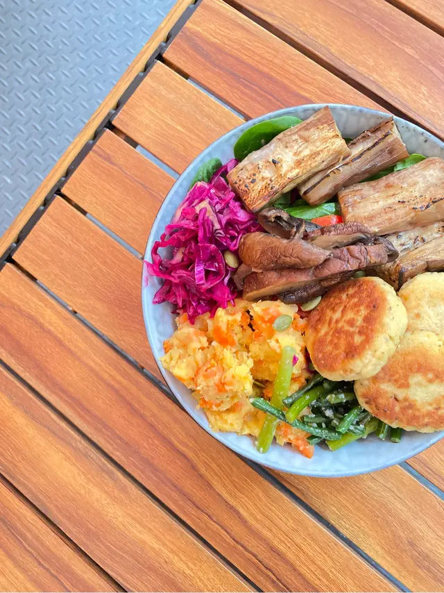 西營盤餐廳多,尤其很多有葷素餐廳也有純素選擇。今次試了Locofama。採用本地蔬菜,支持本地農夫。可以減低碳排放,最重要係新鮮。 MAKE YOUR OWN DAILY FAMA BOWLtoppings: baked miso eggplant 4pcs $40base: curly kale, avocado Quinoa mixbeetroot hummus, cherry tomato salsa sunflower seed $108sides : beetroot hummus $30dressing: sweet balsamic vinaigrette 未試過beetroot hummus所以試吓,beetroot有時會有陣味,呢個醬冇喎,易入口。curly kale新鮮爽脆。我選的都有大量蛋白質:藜麥、鷹嘴豆醬. 顏色、味道俱全。下次再試其他菜式。…查看更多