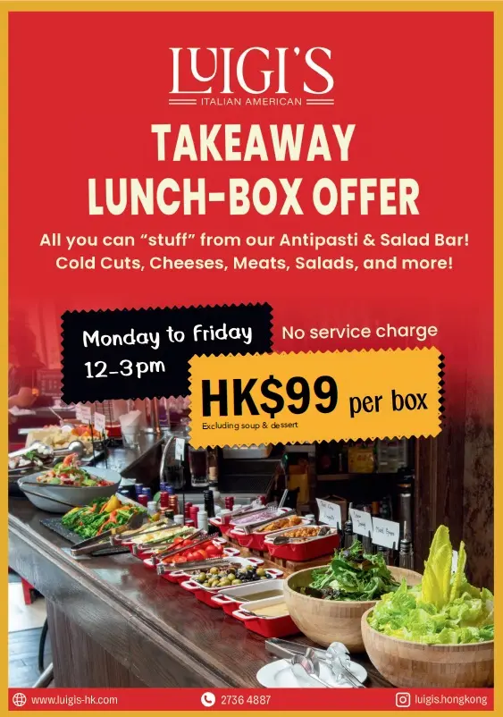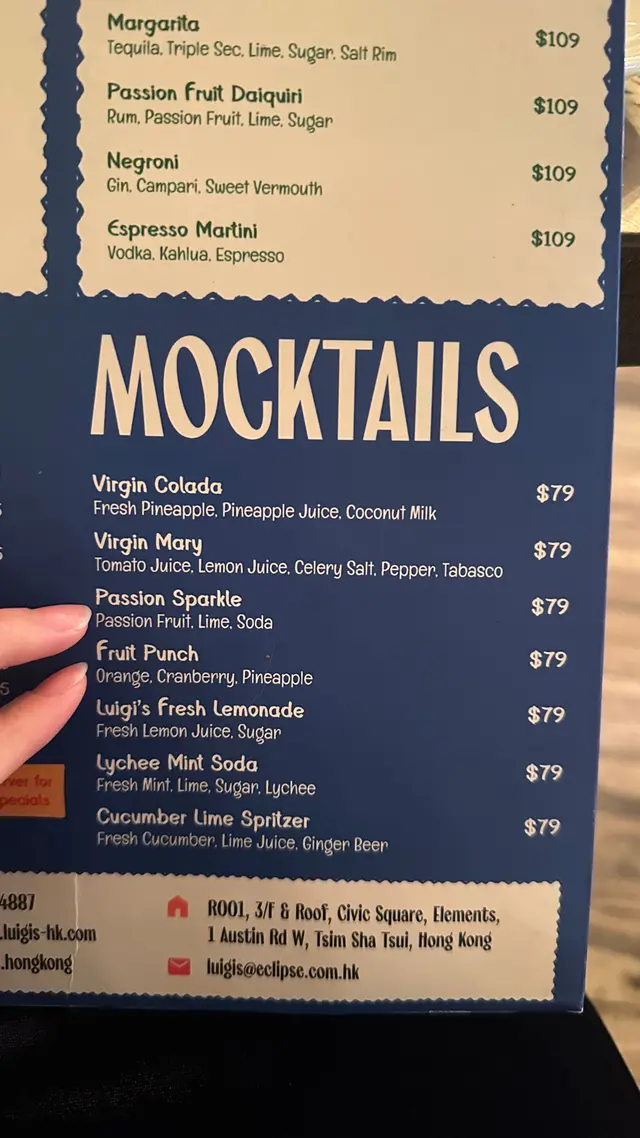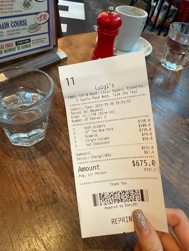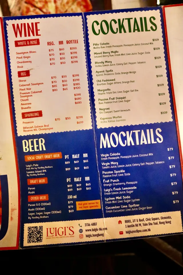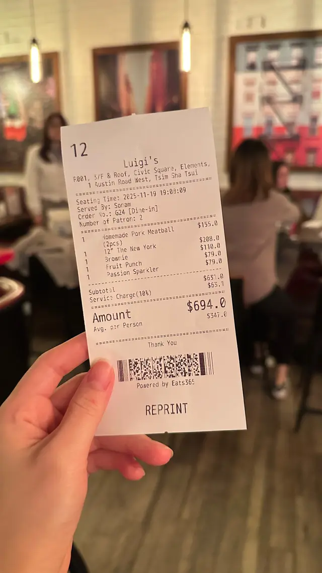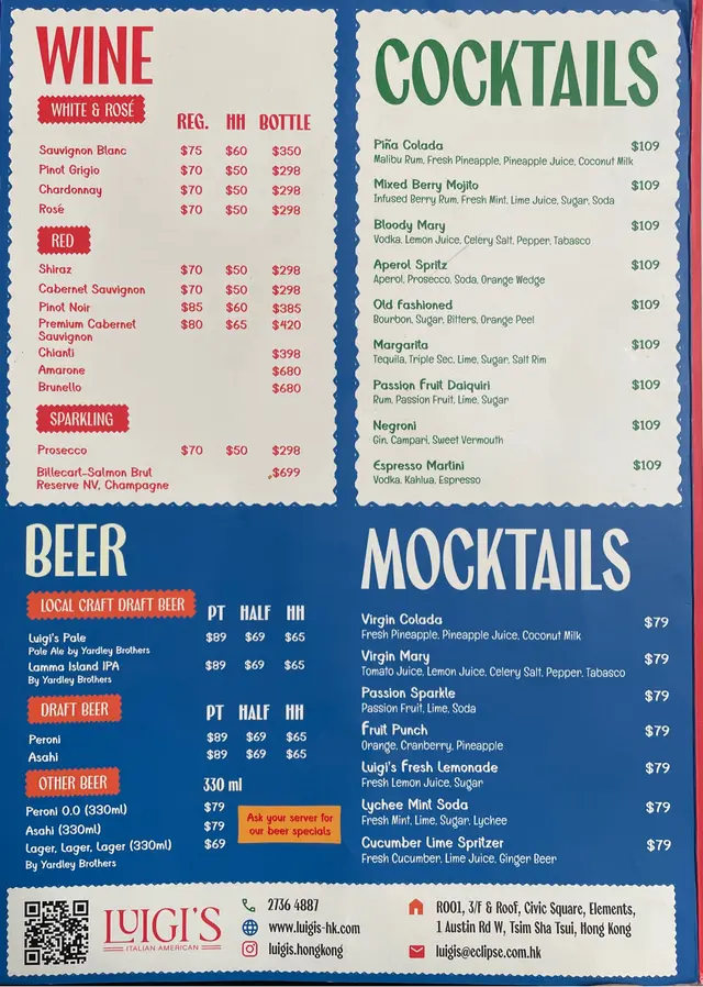 Luigi’s (尖沙咀) 網上訂座享低至5折優惠兼賺Rice Dollars 網址: https://s.openrice.com/QrbS0hQOD00 地址: 香港尖沙咀柯士甸道西1號ELEMENTS圓方金區演薈廣場頂樓R001號舖 電話: +852 27364887