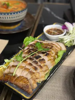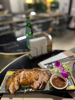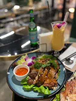 fusion菜酒吧日式酒吧就見得多,泰菜酒吧都係第一次試,仲要開喺尖沙咀嘅鬧市,距離地鐵站都只不過係5-10分鐘嘅路程,但環境好好好舒服餐廳可以揀坐外邊,通風好好一啲都唔熱,內部環境都好寬敞,一般酒吧玩既dart機都有各類飲品都係$68-78,非常之抵飲!可惜今日朋友仔揸車,我都唔獨樂樂啦😌泰菜點少得炸蝦餅打頭陣,非常之熱辣!而且好彈牙,有6個半件,大大件!呢到既菜式都非常多選擇,估唔到有原條燒茄子,但味道同我哋一般食開嘅非常唔同,有驚喜!茄子用咗甜麵豉醬去燒,加埋炸蒜片,鹹甜鹹甜咁非常唔錯蠔仔蛋係用鐵板上,非常熱辣辣,店員都細心提醒我哋小心鐵板。啲蠔大粒都已經唔係蠔‘’仔‘’等級😳冇腥味,蛋非常嫩滑,重點係勁大份🤣都係$138,必點!咖喱可以揀紅黃青配豬牛羊,我哋揀咗青咖喱牛配蒜蓉包,本身以為冇咩特別,但青咖哩非常香濃!牛肉係鮮牛肉而且冇用鬆肉粉乸到死曬,仲有牛味,好食到淋啲咖哩落個蠔仔蛋一齊食,超夾!重點仲有塊蒜蓉包,金黃色真係勁脆🥹點咖喱一流!同場加映隔籬枱唔知叫咩特別菜呢,店員係枱前上演炙燒表演,全場都望曬過去,下次有機會都叫嚟試下先😛有得食仲有表演睇買單兩個人飽到差少少企唔到起身🤣都係$475食咁多嘢,真係抵到爛!…查看更多