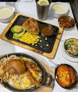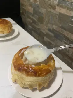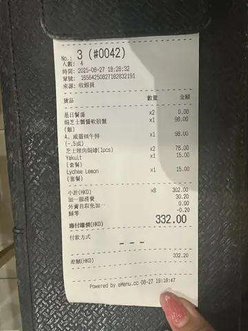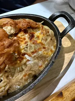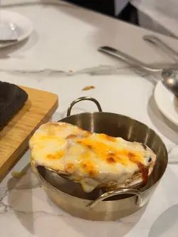 今晚跟朋友過旺角吃晚餐,這間餐廳相當抵食!點了兩客主食,加配了兩個小吃,然後仲配上了餐湯和熱飲!忌廉湯,粟米味道清甜,忌廉湯口感幼細香滑!熱檸蜜,非常滋潤,檸蜜清甜!香辣魷魚,非常惹味,帶點點微辣,魷魚彈牙爽口,作為小吃來講冇得頂!芝士煙肉焗薯皮,非常邪惡,焗薯上面鋪滿了滿滿芝士,而且醬汁很多,每一啖都芝味無窮。而且非常熱辣辣,薯蓉軟綿綿的,又多汁及芝士,除了邪惡都不知說什麼!正!香蒜欖油海鮮意粉,食材有魷魚、蝦、蜆肉、椒類等等。意粉份量充足。意粉味道不錯,而且用上了香蒜欖油拌勻意粉,陣陣蒜香好吸引!清香又不膩,非常不錯!又飽肚又滿足!白布烏冬配香烤油封鴨髀,這間餐廳也有白布烏冬吃!本人非常喜歡吃這烏冬!因為白布烏冬的造型是像一匹白布似的,一片又闊身又長的烏冬,口感非常煙韌彈牙,而且白布烏冬非常長身,賣相十分特別,而且不是太多餐廳能夠吃到,所以是必試的!白布烏冬可以沾上胡麻醬和紫菜和風醬來吃,有不同的味道,一份烏冬可以帶出兩種不同口味!正另外香烤油封鴨髀都相當美味,啖啖肉超多汁!超級滋味!…查看更多