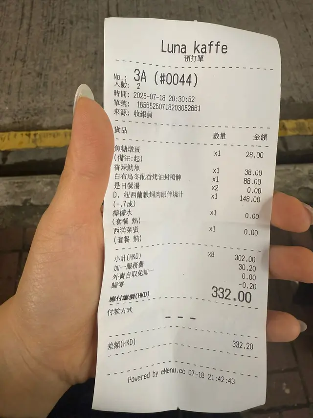 Luna Kaffe (旺角) 網上訂座即賺Rice Dollars 網址: https://s.openrice.com/QrbS0Y38D00 地址: 香港旺角通菜街25號地舖 電話: +852 65758404
