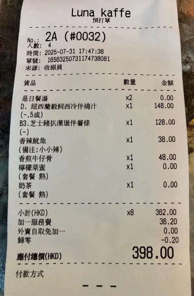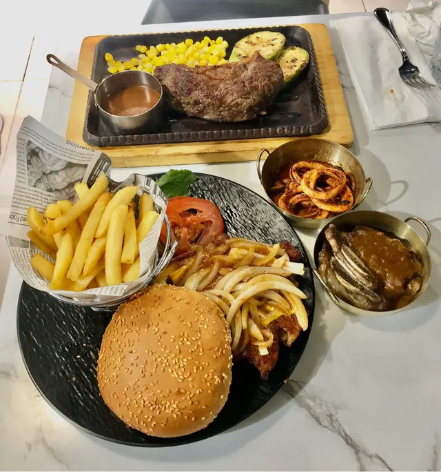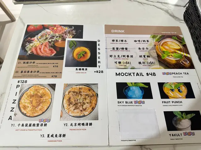 今晚跟朋友過旺角吃晚餐,這間餐廳相當抵食!點了兩客主食,加配了兩個小吃,然後仲配上了餐湯和熱飲!忌廉湯,粟米味道清甜,忌廉湯口感幼細香滑!熱檸蜜,非常滋潤,檸蜜清甜!香辣魷魚,非常惹味,帶點點微辣,魷魚彈牙爽口,作為小吃來講冇得頂!芝士煙肉焗薯皮,非常邪惡,焗薯上面鋪滿了滿滿芝士,而且醬汁很多,每一啖都芝味無窮。而且非常熱辣辣,薯蓉軟綿綿的,又多汁及芝士,除了邪惡都不知說什麼!正!香蒜欖油海鮮意粉,食材有魷魚、蝦、蜆肉、椒類等等。意粉份量充足。意粉味道不錯,而且用上了香蒜欖油拌勻意粉,陣陣蒜香好吸引!清香又不膩,非常不錯!又飽肚又滿足!白布烏冬配香烤油封鴨髀,這間餐廳也有白布烏冬吃!本人非常喜歡吃這烏冬!因為白布烏冬的造型是像一匹白布似的,一片又闊身又長的烏冬,口感非常煙韌彈牙,而且白布烏冬非常長身,賣相十分特別,而且不是太多餐廳能夠吃到,所以是必試的!白布烏冬可以沾上胡麻醬和紫菜和風醬來吃,有不同的味道,一份烏冬可以帶出兩種不同口味!正另外香烤油封鴨髀都相當美味,啖啖肉超多汁!超級滋味!…查看更多
