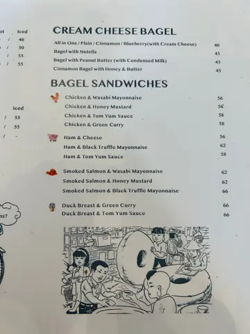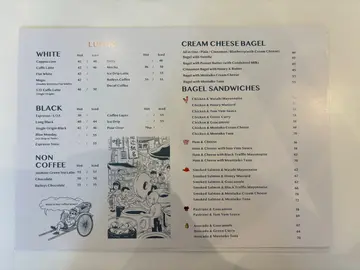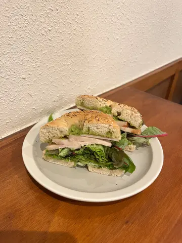 假日早上,同朋友係天后跑台山揾間靜靜舒服嘅cafe,飲杯啡,食輕食,店舖位置稱不上friendly,唔係話街頭街尾、角落位置,係巷仔入面,街道安靜。店舖環境舒適安靜,提供室內外位置。$68 Chicken and mentaiko sauce 餡料夾埋雞肉同沙律菜,主要調味來自明太子同cream cheese,欣賞它並沒有拌勻兩者,食落明太子粒粒口感,鹹香鹹香明太子蓋過cream cheese,雞肉嫩滑,唔嚡,整個配搭不錯喎!$40 Cinnamon bagel with cream cheese 嗯,,肉桂味唔出,但bagel質地煙韌,唔乾且soft ,配上一層light cream cheese ,呢個價錢就有啲推卻左,因為我見牆上有擺放一袋袋零售bagel並不是自家製的,所以..不推薦,建議自己買相同bagel在家reheat更划算。$42 Flat white (hot) +5 oat milk 比正常咖啡店size細杯,味道正常睇到好多page都對呢間餐廳嘅bagel贊不絕口,但其實都不是店家自家製喎😳