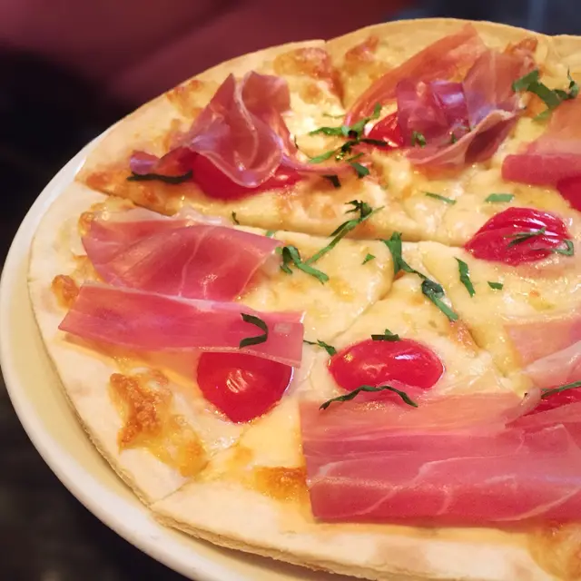 Parma ham pizza with cream sauce
