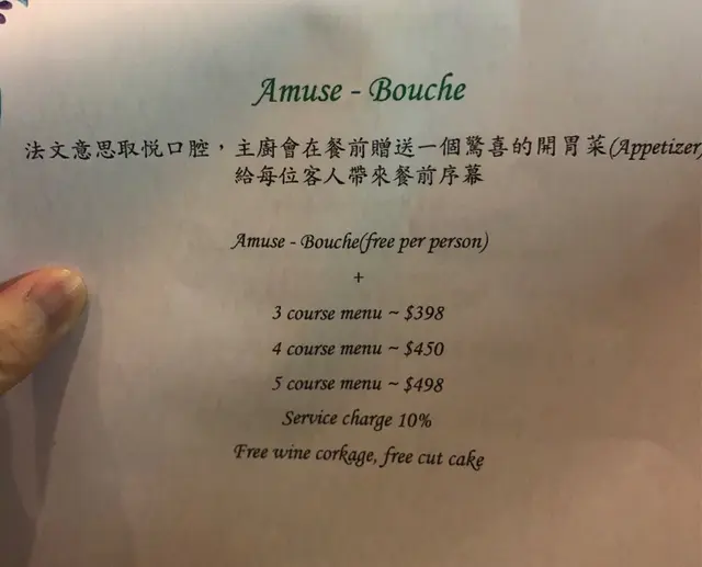 First time here as I only heard about this place from my friend. Given its hard-to-find entrance, it looks like one of the hidden gems in town. I chose the Foie Gras Terrine, Lobster Bisque, Tenderloin with Lobster (surf and turf) and Strawberry Mille-feuille. The courses are generally OK, but the thing we like the most is the free corkage, which we can bring our own favourite wines to pair with the food!…查看更多