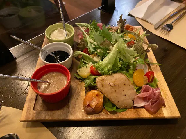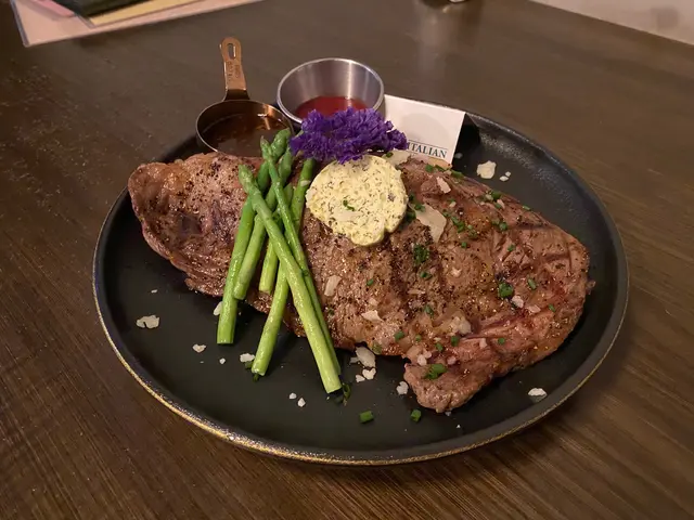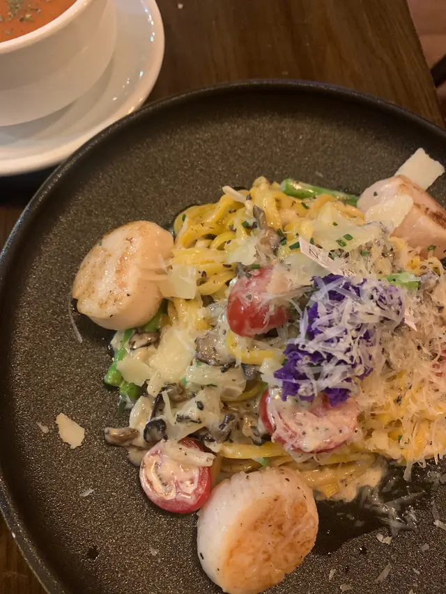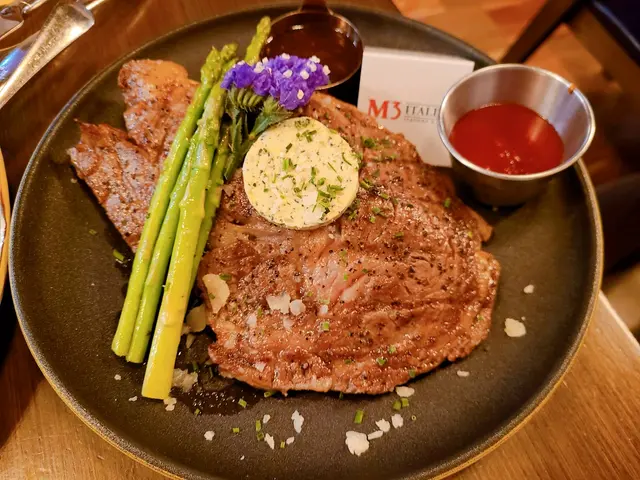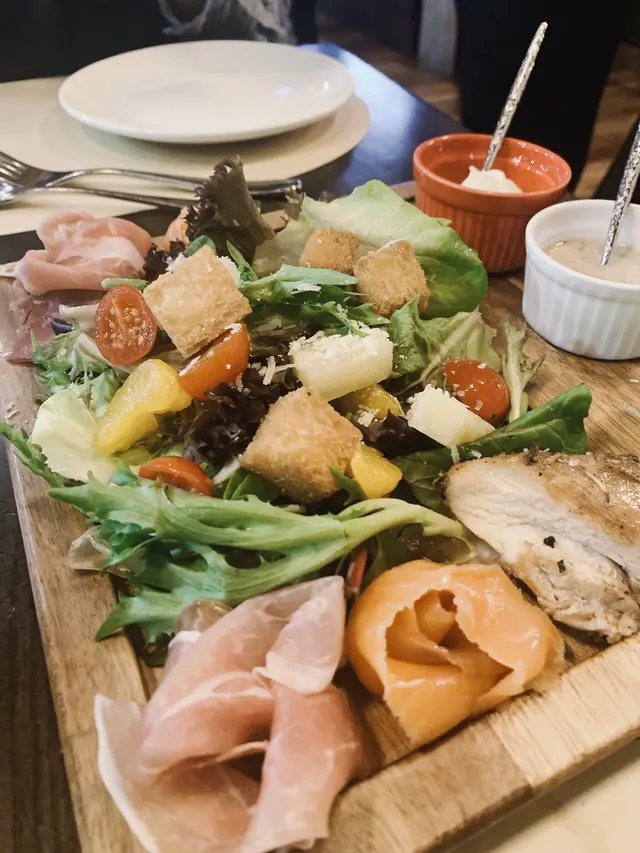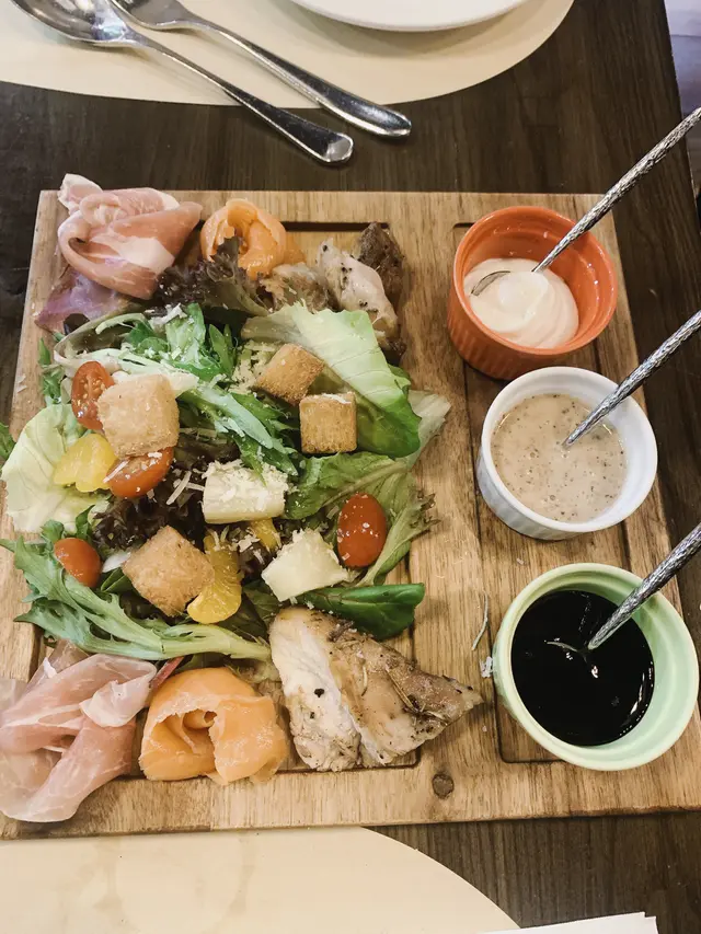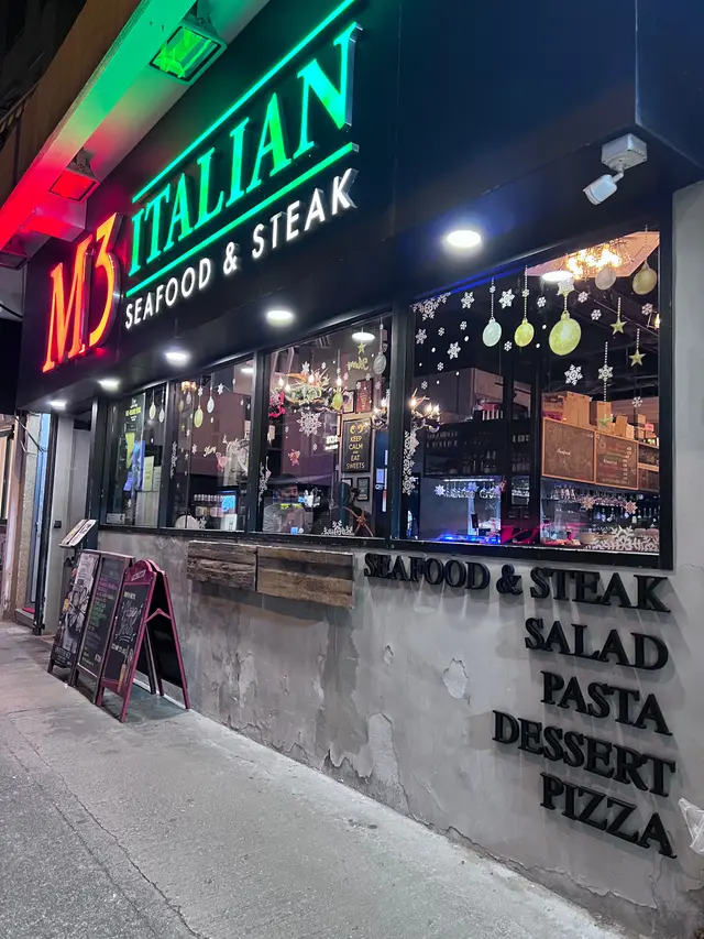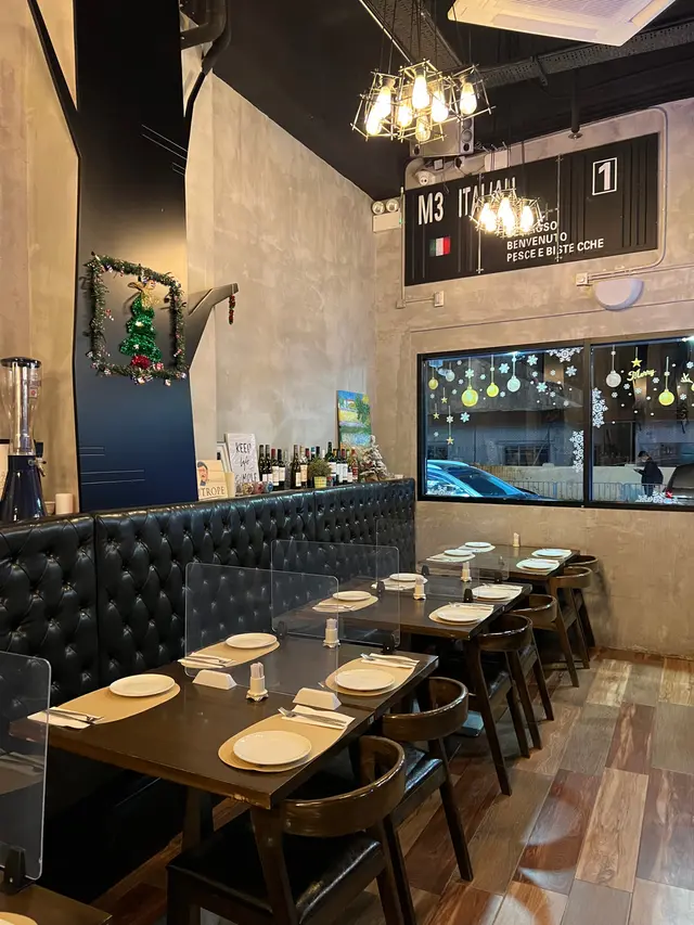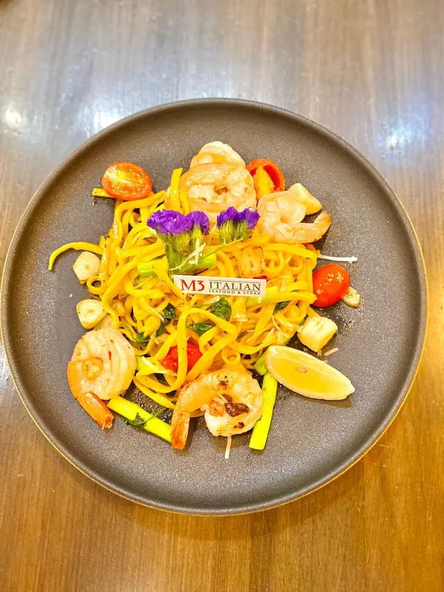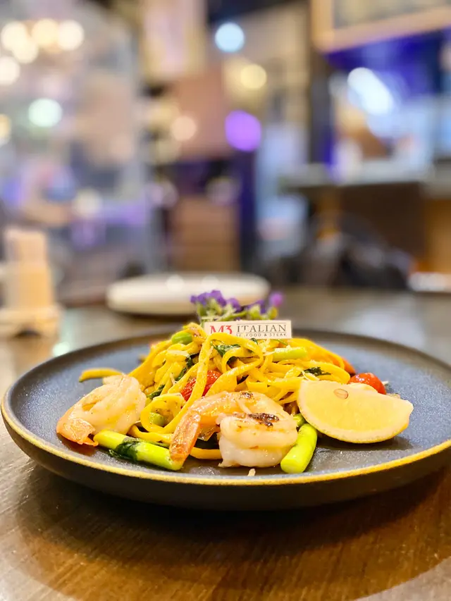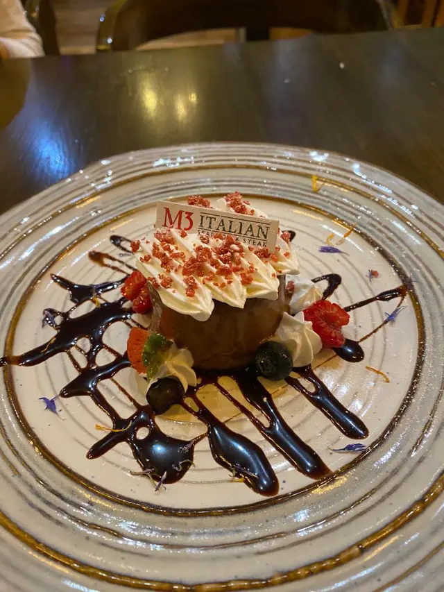 有日去大圍揾朋友食晚飯,揾到呢間食意大利既餐廳叫「M3 Italian」。🇮🇹💕🤓😊兩個人點咗以下餐點……餐前小吃:🥖麵包配油醋汁上枱時仲暖暖哋,食落口感鬆軟,配上油醋汁,好味。😋1️⃣M3 沙律🥗$168食材包括烤雞🐔、煙三文魚🍣、巴馬火腿🥓、大量沙律菜🥗,配上三款醬汁,分別有沙律醬、芝麻醬、黑醋汁,份量十足,食材新鮮。👍🏻2️⃣炭燒美國肉眼扒🥩$328揀咗五成熟,肉質淋滑,配上爽脆蘆筍,香脆粗薯條🍟,濃郁燒汁,好惹味。😋3️⃣意大利四色芝士手製薄餅🧀🍅🍕$178超濃郁芝士味,芝士迷必點,大愛手製薄脆餅底,加上新鮮蕃茄醬,好醒胃,好正。👍🏻下次想品嚐一下佢哋嘅西班牙燒乳豬、黑松露意粉!😋💕…查看更多
