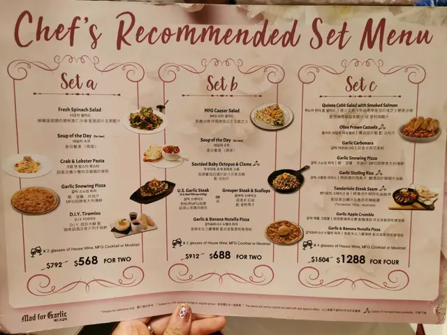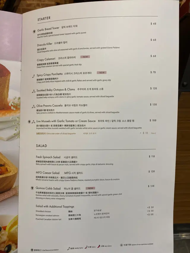 🌰MAD FOR GARLIC 顧名思義係一間岩哂超鍾意蒜味既人去既餐廳,每道餸菜都會有蒜頭/蒜片既蹤影🌰,甜品亦唔例外😆👍🏼。餐廳內部裝潢主題係酒窖,中間一排嘅玻璃櫃放滿了不同酒樽,兩邊牆身又做了白磚牆拱門設計,內裡是卡位,超有特色和格調的🤩。.👯♂️Set C for four💲1288+10%👯♀️🥗煙三文魚拌牛油果車厘茄珍珠芝士藜麥沙律 配 雪梨酒醋汁前菜是超健康的藜麥沙律👍🏼,加了些許醋汁非常醒胃。.🦐橄欖蒜片蝦 配 法包片勁多蒜片散左上面,鋪滿了整個鐵板蝦🤩,蝦雖然是雪藏,不過也很爽口彈牙和大隻👍🏼。.🍝香蒜卡邦尼意粉是天使麵,煮得比較林,醬汁味道不錯。.🍕MFG招牌意大利薄餅Pizza是薄批來的,焗得非常香脆乾身,雖然只有芝士,小蝦和大量蒜片,不過感覺很match😍非常喜歡。.🥘熱鐵板煙肉飛魚子 醃漬蒜炒韓國牛油飯小辣🌶️,飯炒得好香好惹味😋。.🥩烤澳洲牛柳伴牛油餡角牛柳比較乾身,但肉味香濃,配埋蒜蓉汁同餡角,味道非常搭配😋👍🏼。.甜品有兩個😍🤩😍🤩,比較喜歡🍦焗香脆蘋果金寶 配糖漬蒜 配自家製雲呢拿雪糕,而另一個是🍦香蕉朱古力醬薄餅 配自家製雲呢拿雪糕。🍹🍸飲品 x4.P.S. 我地係5個人食4人餐的,非常夠食,仲棒住個肚走😳🤭。…查看更多