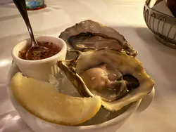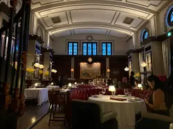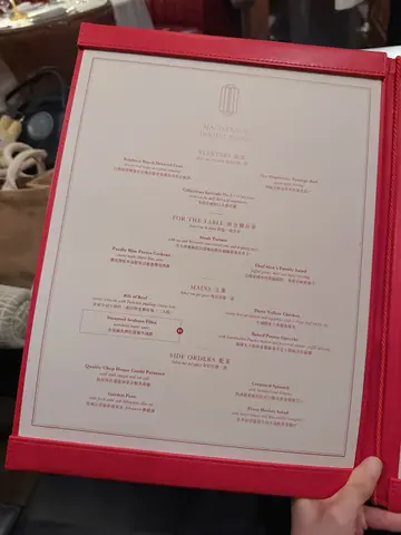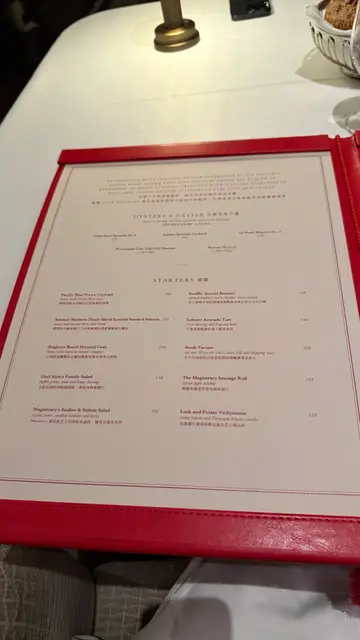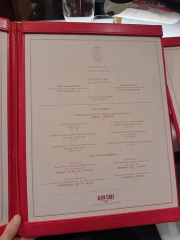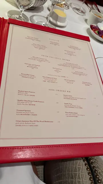 This restaurant is located at Tai Kwun, taking over the Central Magistracy to re-develop into a chic, nice dining spot. With a large counter facing the entrance, the staff leads us to the main dining area, which has a grand, traditional ambience reminding me of some restaurants I have visited in London.Seated at a spacious banquette table on one end, looking out to the full length of the dining room, the high ceiling, wooden floor, panels and staircase, plus the dim lighting, create a more formal but cozy setting, with many guests also dressed up for the occasion. The captain of the restaurant soon came to check in with us and introduced our menu.We had pre-ordered the Chef’s Selection ($988 each), which covers some starters, a main with some side dishes, and dessert. I also have a bottle of Domaine Derey Marsannay 2022 ($1,208) to pair with the food. The Chardonnay has nice acidity, crisp lemon and supple stone fruit notes, on top of floral and a rich stony minerality.There are some light snacks for us to start, including Olives on skewers, Crudités Platter, and Gougères. The platter has different vegetables and pairs with a cheese dip, while the gougères are cheese puffs. Quite nice.The Sourdough comes with classic soft butter and caramel butter, with the latter having a fragrant smokiness which goes well with the bread.The starter are Oysters, served together with lemon and Amelie Speciale Cocktail. The oysters are fresh and sweet in taste, with the condiment providing a nice citrus and vinegar to reduce the briny note.Next comes Magistracy’s Endive & Stilton Salad. The crunchy and bitter endive is paired with the English cheese, with its signature nutty and earthy taste. The salad is also mixed with crystal pears, candied walnuts and herbs to further enhance the flavours.Then comes Leek and Potato Vichyssoise. The chilled soup is made from blending the cooked leek and potatoes, served with crème fraiche and Parmesan brioche crumbs. The soup is creamy and rich, while having delicate taste which helps to make it less heavy.There are two mains included in the menu. First is Steamed Seabass, with crispy caviar and mandarin butter sauce. The seabass is cooked well, with a crisp skin while the flesh is still moist. The sauce has a rich buttery note while balancing with the acidity of the mandarin.The other mains feature local Three Yellow Chicken, with the creamy braised chicken and vegetables served with a crispy puff pastry top. My favourite in the evening, the chicken and sauce are seasoned well, delicious in taste while not too rich and heavy. But best to share instead of finishing by one person.On the side there are three dishes, including Creamed Spinach, with bechamel and glazed Gruyere. Taste is good, but a bit too rich especially if goes together with the chicken.The Quality Chop House Confit Potatoes are my favourite of the side dishes, with the potato not greasy, seasoned well with malt vinegar and sea salt.The other one is Crispy Japanese Hen-Of-The-Wood Mushroom, which has a fried chicken look and feel, and served with garlic-parsley Beillevaire butter. It is a bit too dry for me however.Dessert is Sticky Tofu Pudding, with vanilla ice cream on top. Having good sweetness, the pudding is moist, with each bite a rewarding treat.Service is good, with the staff friendly. Even though the etiquette is a bit more formal than I would expect, it does not make you feel out of place. The bill on the night is $3,688. Decent in price and food quality, the place is a great spot to enjoy the colonial ambiance.…查看更多
