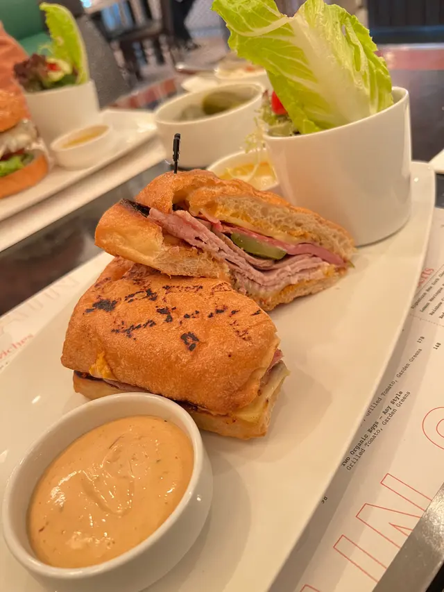 恨咗好耐都未有時間去食嘅一間餐廳咁今次呢就朋友生日所以去試一試。話就話係紐約風味美食的餐廳呀,但係你千祈唔好同Ruby Tuesday或者一啲漢堡包集團去比較。因為佢係食得「高級版」乾淨企理好多嘅。你係要用刀叉去食,唔係乜嘢都用手揦起嚟食。嚟到咁梗係要食個 buffalo wings, Crab 🦀 Cake ,🍔 burger and lasagna ! 同埋一個不可少得嘅 MILKSHAKECrab 🦀 Cake 同 MILKSHAKE 就不容錯失。個burger呢就唔係我想像中咁,因為我鍾意食啲好 Wild,好Juice,好污糟啲汁滴晒落個身度嘅burger。服務好細心嘅,知道我哋會分個burger,所以佢哋都幫你切開兩份。知道我朋友生日都有 Birthday Cake - Lemon meringue 同埋請咗我哋飲兩杯咖啡同茶。我唔小心跌咗個口罩,佢哋都即刻送返一個口罩俾我哋。呢啲細心嘅服務態度,非常感謝🙏🏼。…查看更多