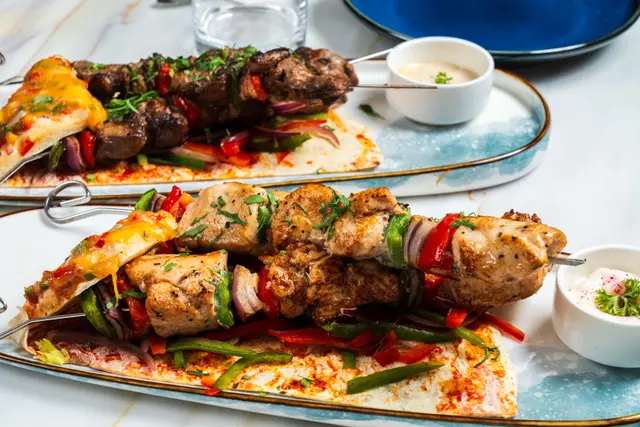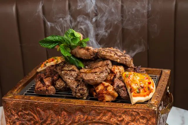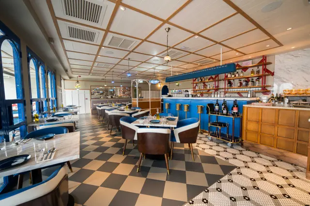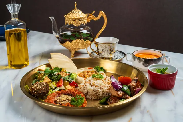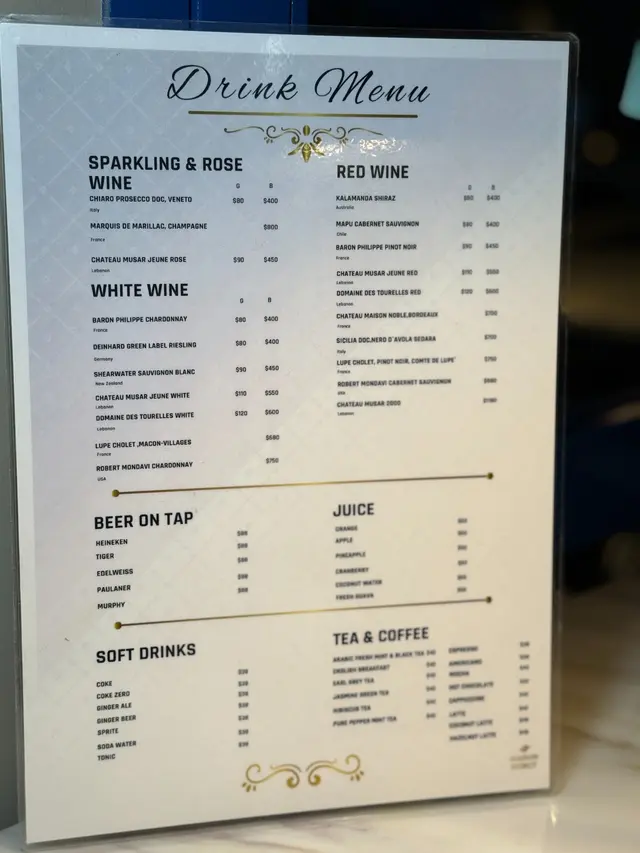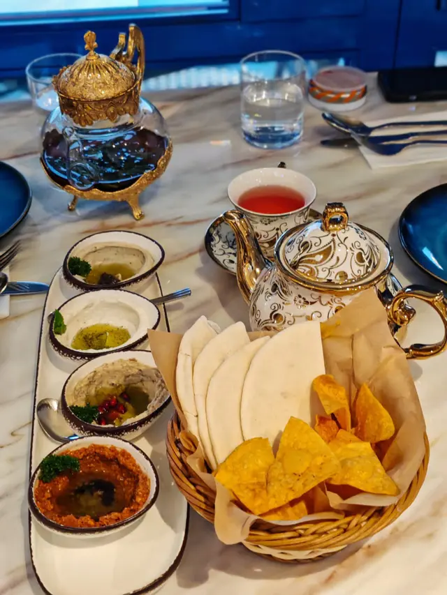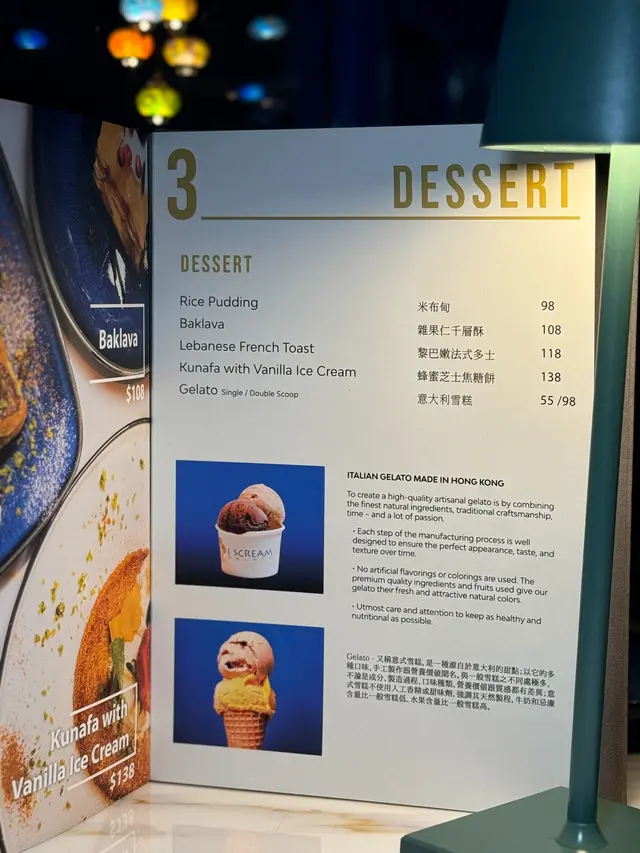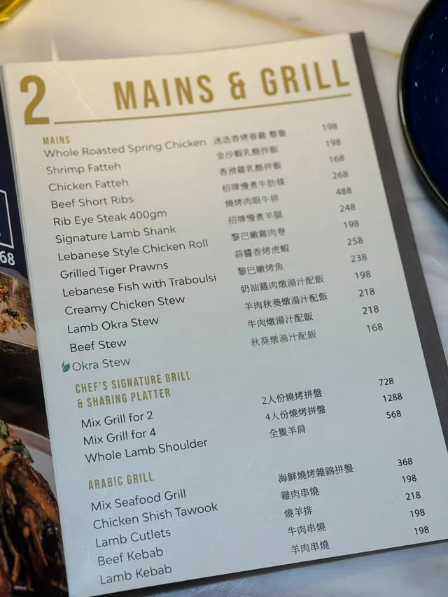 以藍、白色做主調的黎巴嫩餐廳,室內外座位均充滿民族色彩,氣氛休閒寫意。而一系列菜式由埃及總廚設計,帶來獨特的異國風味。