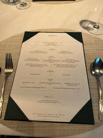 灣仔區以復古花園風design嘅Maison ES Signature Elite 4 course (HK dining week)晚市套餐($580/位).⸝꒰ 1 ˢᵀ course ꒱ 烤熟成墨魚三文魚子。蘿蔔。青瓜。水菜。香辣芝麻醬製作熟成墨魚香軟又充滿彈性 配上三文魚子更鮮味底下芝麻醬再配搭鎮江香醋&生椒油令味道充滿層次꒰ 2 ᴺᴰ course ꒱ 番茄他他將新鮮蕃茄製成他他 配上枝豆及山楂啫喱味道相對清爽開胃 可以清新一下口腔去迎接主菜꒰ Main ꒱香烤鴿肉•備長炭烤油甘魚鴿肉以鹽水處理後再烤香 切開鴿肉粉嫩又充滿肉汁 帶住微微香甜感 配上香茅南薑法羅麥 煙煙韌韌帶點堅果香油甘魚充滿豐腴魚油甘香及淡淡炭香 配搭檸檬白酒牛油汁更突顯鮮味 旁邊仲配上魚子醬&蘆筍꒰ Side ꒱ 大蒜法式薯條•豆豉炒意大利黃瓜蛋黃醬加入炸蒜粒 更香更惹味用上中式豆豉配搭意大利黃瓜估唔到又幾夾꒰ Dessert ꒱芒果芝士蛋糕慕絲整道甜品好輕盈 芒果蓉充滿果肉又甜最後亦送上充滿檸檬香嘅馬卡龍…查看更多