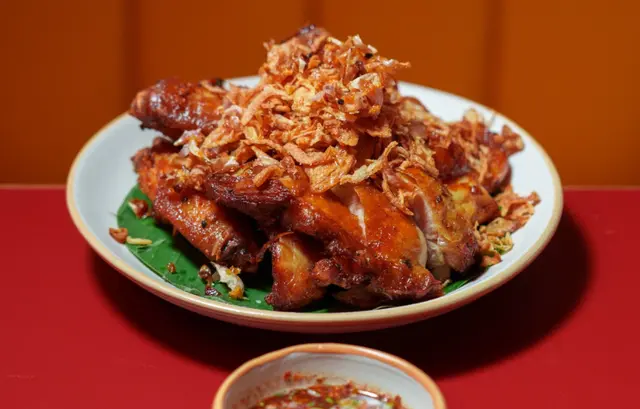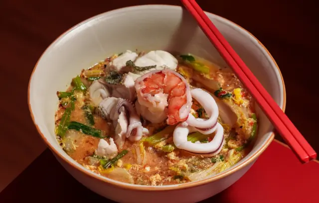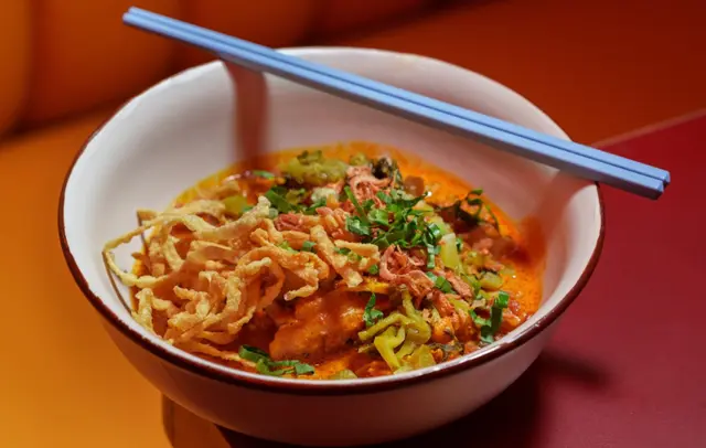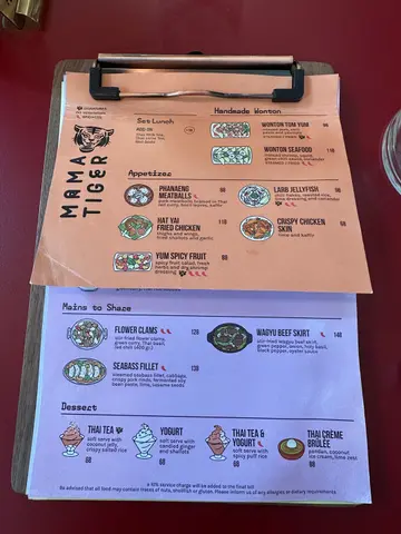 🐯𝑴𝒂𝒎𝒂 𝑻𝒊𝒈𝒆𝒓 𝑵𝒐𝒐𝒅𝒍𝒆𝒔🇹🇭📍中環九如坊12號地舖,係由灣仔人氣意大利餐廳Trattoria Felino團隊主理,請來曼谷知名麵店Thong Smith嘅前主廚Thanit Changchai坐鎮,主打泰式fusion麵食同曼谷街頭風味。餐廳裝修充滿活力同泰式元素,靈感源自泰拳,例如有泰拳短褲啟發嘅凳子同色彩繽紛嘅老虎圖案,打造出好似置身曼谷夜晚嘅熱鬧氣氛🐟 𝗦𝗟𝗜𝗖𝗘𝗗 𝗥𝗔𝗪 𝗛𝗔𝗠𝗔𝗖𝗛𝗜(油甘魚刺身)油甘魚肉質鮮嫩,配上香茅同酸甜青辣椒汁,味道清新開胃,辣度輕微,更能帶出魚嘅鮮味。🍙 𝗧𝗵𝗮𝗶 𝗔𝗿𝗮𝗻𝗰𝗶𝗻𝗶(泰式炸飯糰)外層炸得香脆,入面係黏糯嘅米飯同泰式紅咖喱醬,辣中帶少少甜,口感豐富。🥟𝐖𝐨𝐧𝐭𝐨𝐧 𝐬𝐞𝐚𝐟𝐨𝐨𝐝 𝟐 𝐩𝐜𝐬(海鮮雲吞)雲吞皮薄餡足,入面係蝦肉同魷魚碎,蘸埋青辣椒汁同芫荽,食落鮮味又爽口。🍤 𝗧𝗵𝗮𝗶 𝘀𝘂𝗸𝗶(泰式炒粉絲)用咗虎蝦、魷魚、椰菜同蛋絲一齊炒,粉絲乾身彈牙,芝麻同蔥花增添香氣,味道清淡唔油膩。🍜 𝗠𝗛𝗘𝗘 𝗛𝗔𝗘𝗡𝗚 𝗖𝗛𝗜𝗖𝗞𝗘𝗡 𝗱𝗿𝘆 𝗻𝗼𝗼𝗱𝗹𝗲𝘀(雞肉乾拌米粉)雞肉片嫩滑,加埋脆雞皮同酸辣汁,撈勻泰式米粉一齊食,酸甜微辣,幾開胃。🍛 𝗕𝗲𝗲𝗳 𝗠𝗮𝘀𝘀𝗮𝗺𝗮𝗻 𝗰𝘂𝗿𝗿𝘆(牛肉瑪莎曼咖喱)咖喱汁香濃,牛肉燜得腍身,加入咗薯仔、菠蘿同車厘茄,味道甜中帶辣,配返塊酥脆嘅薄餅一齊食好滿足。🐟 𝐒𝐞𝐚𝐛𝐚𝐬𝐬(蒸海鱸魚)鱸魚蒸得岩岩好,肉質滑溜,配上發酵豆醬同青檸汁,味道鹹鮮帶酸,面頭嘅脆豬皮增加咗口感。🍦 𝗖𝗼𝗰𝗼𝗻𝘂𝘁 𝘀𝗼𝗳𝘁 𝘀𝗲𝗿𝘃𝗲(椰子軟雪糕)椰子味香濃,雪糕質感軟滑,加上烤松子同粟米,口感得意,甜度適中。🍮 𝗖𝗿𝗲𝗺𝗲 𝗯𝗿𝘂𝗹𝗲𝗲(斑蘭焦糖燉蛋)燉蛋有濃郁斑蘭香,面層焦糖脆脆哋,配埋椰子雪糕同青檸皮,味道清新唔膩。…查看更多