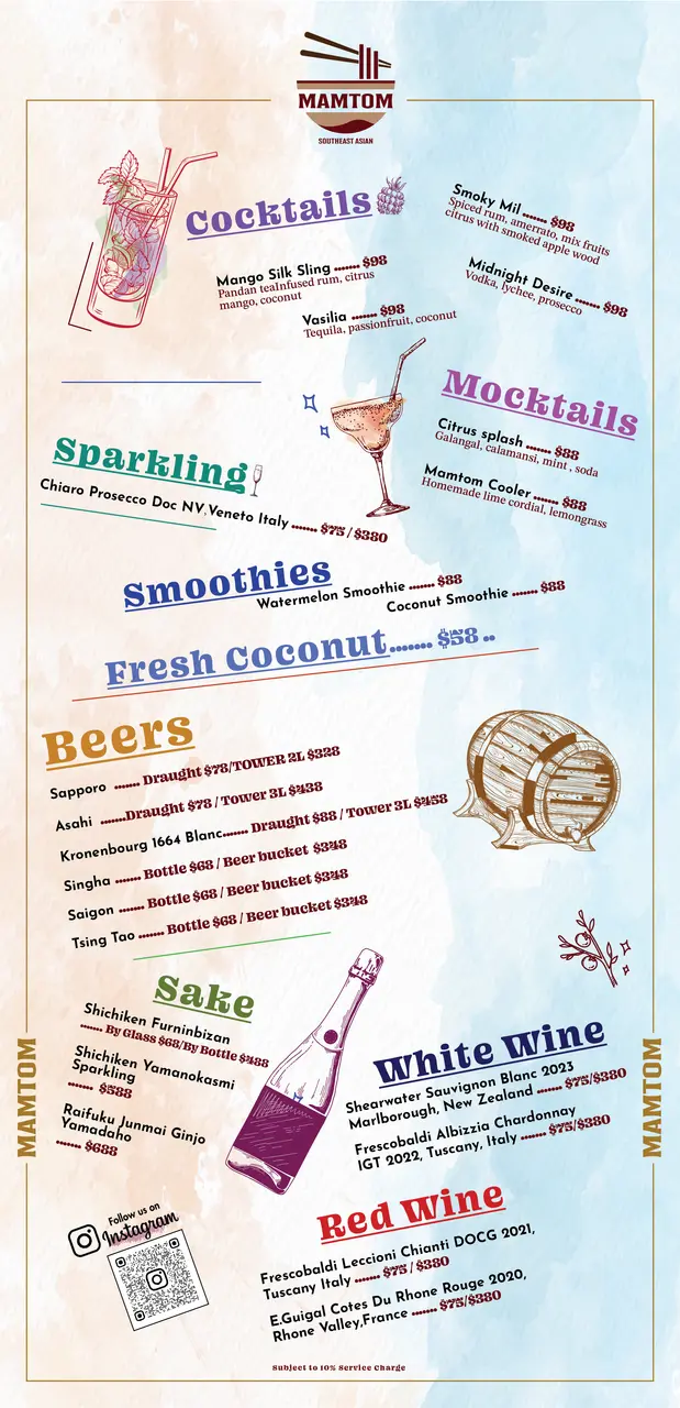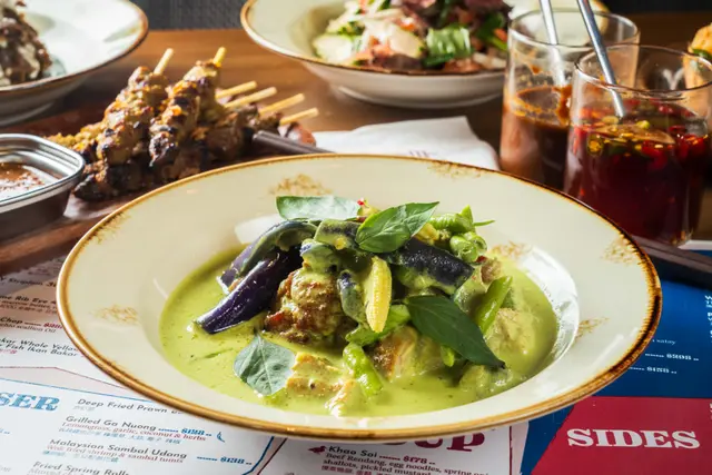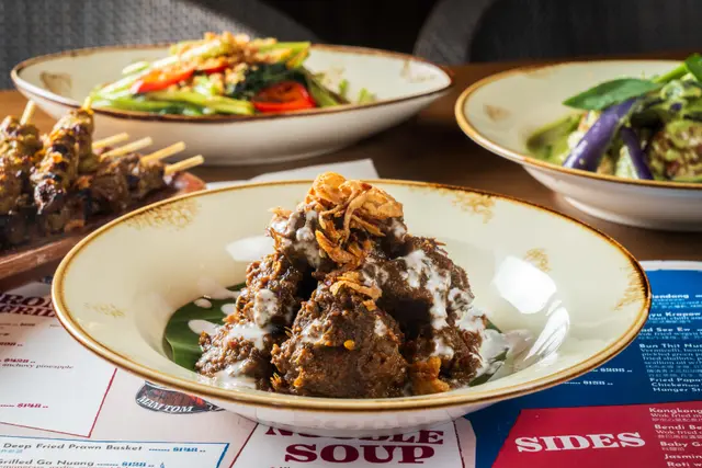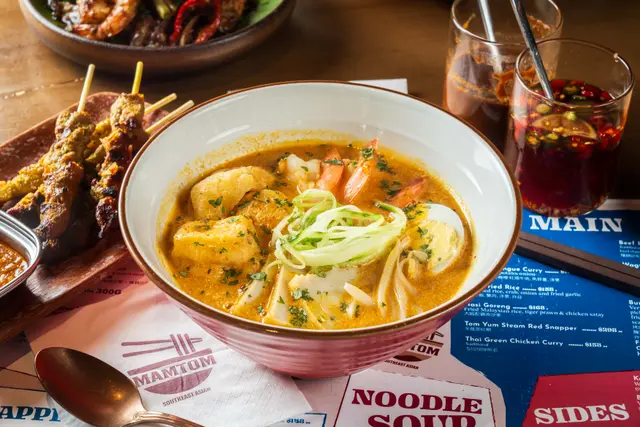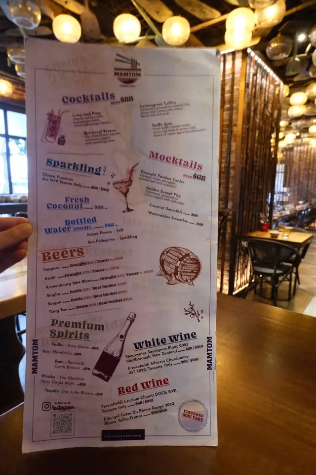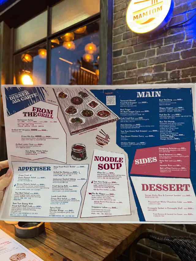Mamtom成個氛圍好有度假feel,牆身顏色同擺設都帶點異國風情,坐低已經好似去咗旅行咁。 Chicken Malaysian Satay雞肉串件件啖啖肉,好入味,外層燒到有少少焦香,啲肉仲保持住嫩滑同Juicy,配埋醬汁一齊食就更加惹味。Grilled Sa Nuong,呢道燒雞肉切得厚薄適中,咬落去真係好Q好煙靱,而且油脂香同埋肉味都好突出,完全唔覺膩。 Singapore Laksa,湯底香濃帶椰香,入口有層次,辣得嚟又唔會過火。啲米線爽口彈牙,吸收咗湯汁之後每啖都好惹味,仲有蝦同豆卜配料,鮮甜又豐富。Baby Gai Lan,炒得爽口翠綠,蒜香同菜嘅鮮甜味好夾。飲品我揀咗Emerald Fandan Cooler,清爽解渴,甜度啱啱好,好適合配住呢啲濃味嘅東南亞菜。Fresh Doconut,飲落清甜又爽口,好有熱帶風情。 甜品Durian Sticky Rice,榴槤雪皅好香濃,椰子雪糕好香,糯米飯煙韌帶甜味,口感超豐富,好特別。…查看更多