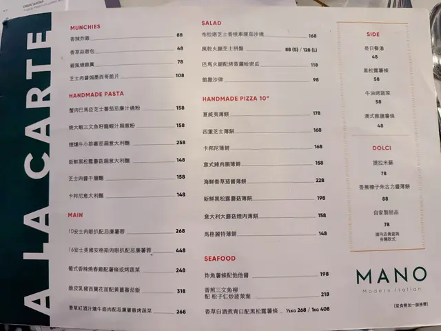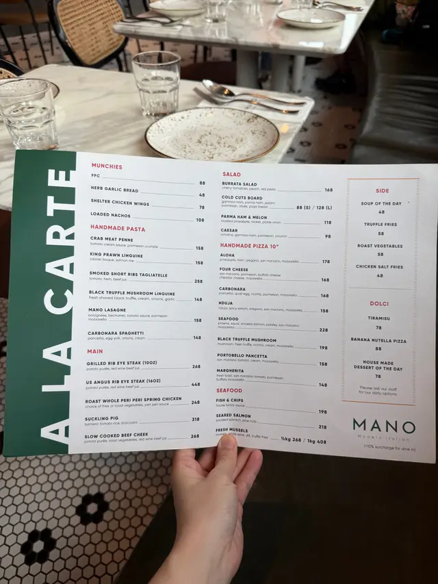 Mano (海濱匯) (觀塘) 網上訂座享低至75折優惠兼賺Rice Dollars 網址: https://s.openrice.com/QrbS0PY0B00 地址: 香港觀塘海濱道77號海濱匯1樓4號舖 電話: +852 28976168