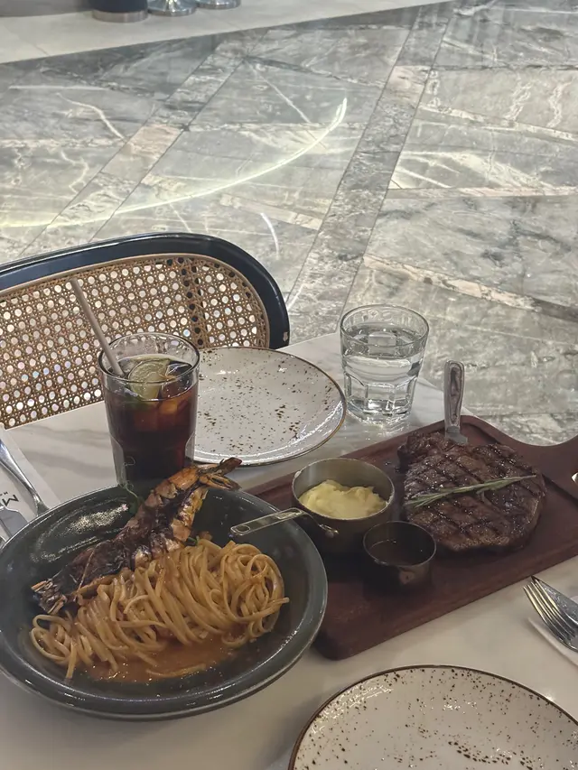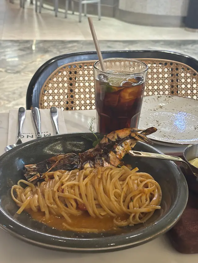Harbourfront Steak & Pasta Night 🌊🍝Checked out Mano last Saturday — breezy seaside air, cozy lights, not too packed, perfect for catching up with friends. Staff were super relaxed, and mains landed nicely around $200–250 per person.🥩 Grilled Rib Eye (10oz, $268)Medium‑rare done right: juicy, smoky edges, paired with truffle mash and greens. The pepper sauce is bold but works well for dipping. Big cut, tender bite — satisfying.🍤 King Prawn Linguini ($158)Fresh prawns with that springy bite, tossed in garlicky white wine…查看更多