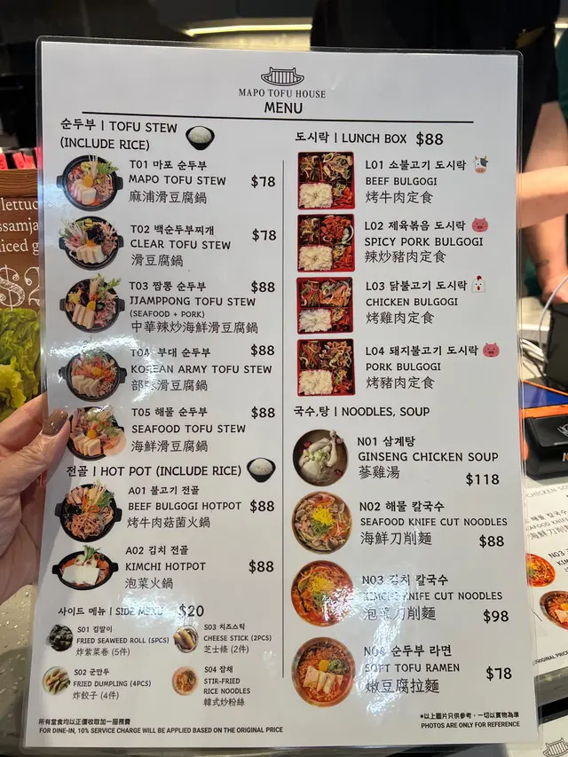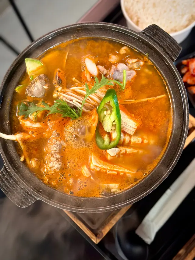 每次睇韓劇見到D oppa食豆腐鍋,都好想即刻飛轉韓國去食✈️原來唔洗去韓國,近近地香港都可以食到正宗韓國味道🇰🇷荔枝角長沙灣廣場最近新開咗間主打韓式豆腐鍋小店—「Mapo Tofu House」🌟由韓國人親自主理,價錢親民,味道地道,食完真係有返韓國街邊店嘅感覺🔥.🍴海鮮嫩豆腐鍋💰$88每個鍋物都用火爐上枱,全程滾住熱辣辣,食到最後一啖都係暖🔥入口係濃濃海鮮味融合韓式辣醬香,鮮甜中帶辣,好開胃😋材料超豐富,有蜆、魷魚、花蟹、帶子、豆腐、雞蛋等✨當然唔少得撈埋白飯,吸哂湯頭精華,一啖接一啖停唔到口💕.🍴麻浦嫩豆腐鍋💰$78除咗冇咗花蟹帶子,其餘配料同海鮮版差唔多😌最值得一讚係豆腐,超滑、豆味香濃,仲落足足一大磚,完全唔係散裝碎豆腐咁hea😎湯底辣度適中,辣中帶甜,飲得晒都唔覺口乾,夠晒地道👍🏻.🍴蔘雞湯💰$118湯入面有成隻雞,煲到軟腍入味,雞肉嫩滑唔鞋口😚湯頭帶淡淡人蔘香,溫潤養身,飲落唔會覺得燥,雞味同蔘香平衡得啱啱好,唔會有單邊搶味😛最重要係個湯清爽唔油膩,飲完唔覺滯,好舒服😌.🍴菜包肉💰$188五花肉厚切帶油香,煙韌唔膩,配埋辣泡菜、蒜片、辣椒、生菜同韓式醬,一口包住咬落去超juicy🤪…查看更多