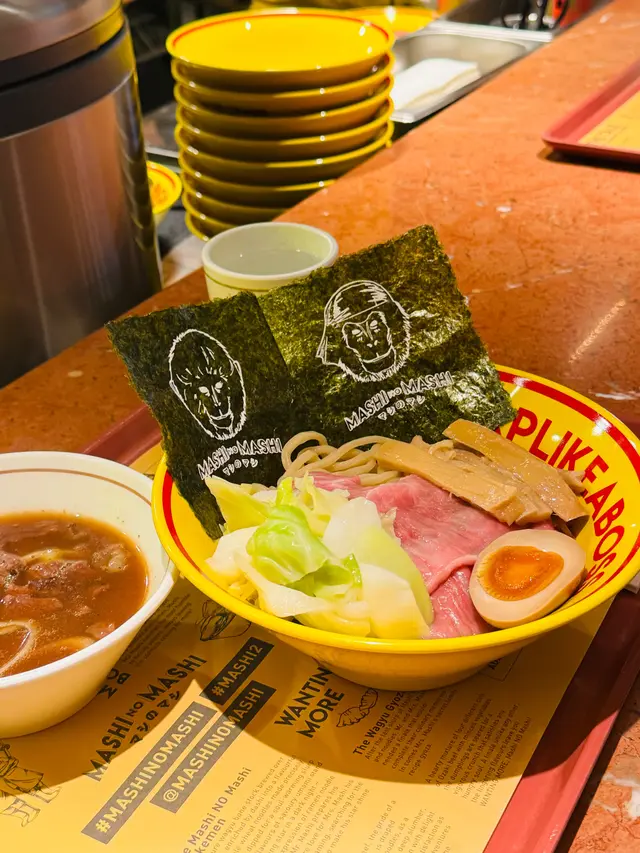 📍Mashi No Mashi[中環高質和牛沾麵]Mashi No Mashi 位於灣仔嘅總店每日未開舖已經大排長龍,咁就去中環試一下今次試左主打嘅和牛沾麵(餐廳亦有提供和牛拉麵同和牛丼)沾麵湯汁用牛骨淆製而成 同時有濃厚嘅鰹魚汁香味 麵身選用中粗身彈牙得黎亦相當掛汁 和牛即場燒至半熟 肉味相當濃郁 香口之餘同時亦保留和牛嘅鮮嫩 糖心蛋生熟程度啱啱好 清新蛋香中和左和牛同沾麵汁嘅少許油膩感…查看更多